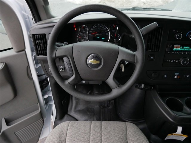 This Express 3500 is well equipped with Chrome Appearance Package (Chrome Grille and Front Chrome Bumper w/Step-Pad), Driver Convenience Package (Tilt Steering Wheel), Power Convenience Package (Power Door Locks w/Lock-Out Protection and Power Windows), Preferred Equipment Group 1WT, 2 Speakers, 220 Amps Alternator, 3.42 Rear Axle Ratio, 4-Wheel Disc Brakes, a 770 CCA Heavy-Duty Maintenance-Free Battery for those cold mornings, ABS brakes, Air Conditioning, AM/FM radio, Bluetooth Phone Connection Kit (LPO), Body Soft-Mount Donut & Bolt, Cruise Control, Delay-off headlights, Driver & Front Passenger High-Back Bucket Seats, Driver & Front Passenger Vinyl Visors, Driver door bin, Driver's Seat Mounted Armrest, Dual front impact airbags, Dual front side impact airbags, Electronic Stability Control, Engine Cover Console w/Swing-Out Storage Bin, Exterior Parking Camera Rear, Front anti-roll bar, Front Bucket Seats, Front wheel independent suspension, Fully automatic headlights, Heavy-Duty Locking Rear Differential, Inside Rearview Mirror w/Rr Vision Camera Display, Low tire pressure warning, Occupant sensing airbag, Outside Temperature Display, Overhead airbag, Passenger cancellable airbag, Passenger door bin, Passenger seat mounted armrest, Power steering, Radio: AM/FM Stereo w/MP3 Player & Digital Clock, Reclining High-Back Bucket Seats w/Inboard Armrests, Remote Keyless Entry, Remote Vehicle Starter System, Single Rear Wheel Configuration, Tachometer, Theft Alarm Notification, Traction control, Trailering Wire Harness, Trip computer, Variably intermittent wipers, Vinyl Seat Trim, Voltmeter, and Wheels: 16 x 6.5 8-Lug Painted Steel HD (4).