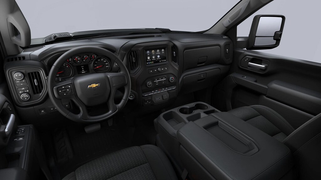 This Silverado 2500HD is well equipped with Preferred Equipment Group 1WT (Durabed Pickup Bed, HD Rear Vision Camera, Locking Tailgate, Power Door Locks, Push Button Start, Remote Keyless Entry, 170 Amp Alternator, 2-Speed Electronic Shift Transfer Case, 3.5 Diagonal Monochromatic Display DIC, 3.73 Rear Axle Ratio, Black Front Bumper, Black Mirror Caps, Black Rear Bumper, Bluetooth® For Phone, Chevrolet Connected Access Capable, Compass, Manual Tilt-Wheel Steering Column, OnStar Services Capable, Rubberized-Vinyl Floor Covering, Solar Absorbing Tinted Glass, Standard Tailgate, Wheels: 17 Silver Painted Steel, Wi-Fi Hotspot Capable, and Wireless Phone Projection), Snow Plow Prep/Camper Package (220 Amp Alternator), WT Convenience Package (Deep-Tinted Glass and Electric Rear-Window Defogger), Suspension Package, Auto High-beam Headlights, Auto-Dimming Inside Rear-View Mirror, Fully automatic headlights, Outside temperature display, Tilt steering wheel, 2 Speakers, 2-Speaker Audio System Feature, 4-Wheel Disc Brakes, 720 Cold-Cranking Amps Heavy-Duty Battery, ABS brakes, Air Conditioning, AM/FM radio, Apple CarPlay/Android Auto, Brake assist, Delay-off headlights, Driver door bin, Dual front impact airbags, Dual front side impact airbags, Electronic Stability Control, Emergency communication system: OnStar, Front anti-roll bar, Front Center Armrest w/Storage, Front reading lights, Front wheel independent suspension, Illuminated entry, Low tire pressure warning, Occupant sensing airbag, Overhead airbag, Overhead console, Panic alarm, Passenger door bin, Passenger vanity mirror, Power steering, Power windows, Premium audio system: Chevrolet Infotainment 3, Radio: Chevrolet Infotainment 3 System, Rear step bumper, Remote keyless entry, Speed control, Tachometer, Traction control, Trip computer, Upfitter Switch Kit (5), Variably intermittent wipers, Vinyl Seat Trim, and Voltmeter.