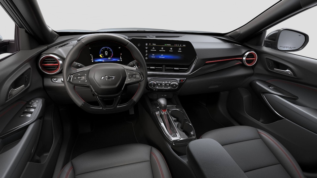 This Trax is well equipped with Driver Confidence Package (Adaptive Cruise Control, Lane Change Alert w/Side Blind Zone Alert, Rear Cross Traffic Alert, and Rear Park Assist), Sunroof Package (Power Sliding Glass Sunroof w/Manual Shade and Wireless Charging), 2-Way Adjustable Front Head Restraints, 2-Way Power Driver Lumbar Seat Adjuster, 3.50 Final Drive Axle Ratio, 4-Way Manual Front Passenger Seat Adjuster, 4-Wheel Disc Brakes, 6 Speakers, 6-Speaker Audio System Feature, 8-Way Power Driver Seat Adjuster, ABS brakes, Air Conditioning, Alloy wheels, AM/FM radio: SiriusXM, Auto High-beam Headlights, Automatic temperature control, Brake assist, Bumpers: body-color, Compass, Delay-off headlights, Driver door bin, Driver vanity mirror, Dual front impact airbags, Dual front side impact airbags, Electronic Stability Control, Emergency communication system: OnStar One Essentials, Evotex Seat Trim, Exterior Parking Camera Rear, Front anti-roll bar, Front Bucket Seats, Front Center Armrest, Front reading lights, Front wheel independent suspension, Fully automatic headlights, Heated door mirrors, Heated Driver & Front Passenger Seats, Heated front seats, Heated steering wheel, Illuminated entry, Leather steering wheel, Low tire pressure warning, Occupant sensing airbag, Outside temperature display, Overhead airbag, Overhead console, Panic alarm, Passenger door bin, Passenger vanity mirror, Power door mirrors, Power driver seat, Power steering, Power windows, Premium audio system: Chevrolet Infotainment 3, Radio data system, Radio: AM/FM Stereo Audio System, Rear window defroster, Rear window wiper, Remote keyless entry, Security system, SiriusXM Trial Subscription, Speed control, Split folding rear seat, Spoiler, Sport steering wheel, Steering wheel mounted audio controls, Tachometer, Telescoping steering wheel, Tilt steering wheel, Traction control, Trip computer, Variably intermittent wipers, Wheels: 19 Black-Painted Machined Aluminum, and Wireless Apple CarPlay/Wireless Android Auto.