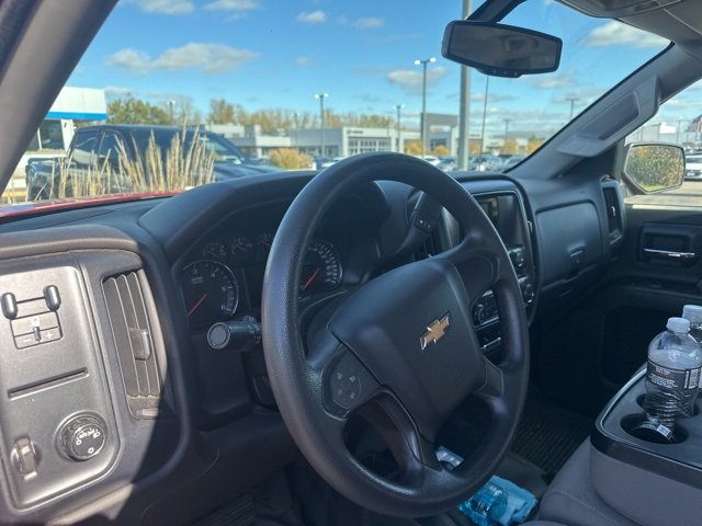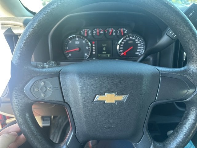 This Silverado 1500 is well equipped with Preferred Equipment Group 1LS (Bluetooth® For Phone, Deep-Tinted Glass, Remote Keyless Entry, Single Slot CD/MP3 Player, 150 Amp Alternator, 3.5 Diagonal Monochromatic Display, 6 Speaker Audio System, Black Power Adjustable Heated Outside Mirrors, Chrome Grille Surround, Front Chrome Bumper, Graphite-Colored Rubberized-Vinyl Floor Covering, Manual Tilt Wheel Steering Column, OnStar 6 Months Directions & Connections Plan, OnStar w/4G LTE, Power Windows w/Driver Express Up, Rear Chrome Bumper, and SiriusXM Satellite Radio), Trailering Equipment (Heavy-Duty Rear Locking Differential), Silverado Custom (DISC) (Chrome Door Handles and Chrome Mirror Caps), 3.42 Rear Axle Ratio, 6 Rectangular Chromed Tubular Assist Steps (LPO), Integrated Trailer Brake Controller, Wheels: 17 x 8 Stainless Steel Clad, 4-Wheel Disc Brakes, 40/20/40 Front Split Bench Seat, 6 Speakers, ABS brakes, Air Conditioning, AM/FM radio: SiriusXM, Auxiliary External Transmission Oil Cooler, Brake assist, Bumpers: chrome, CD player, Cloth Seat Trim, Delay-off headlights, Driver door bin, Dual front impact airbags, Dual front side impact airbags, E85 FlexFuel Capable, Electric Rear-Window Defogger, Electronic Stability Control, Emergency communication system: OnStar Directions & Connections, Front anti-roll bar, Front Center Armrest w/Storage, Front License Plate Kit, Front reading lights, Front wheel independent suspension, Fully automatic headlights, Heated door mirrors, Heavy Duty Suspension, Illuminated entry, Low tire pressure warning, Occupant sensing airbag, Overhead airbag, Overhead console, Panic alarm, Passenger door bin, Passenger vanity mirror, Power door mirrors, Power steering, Power windows, Premium audio system: Chevrolet MyLink, Radio data system, Radio: AM/FM Audio System w/Chevrolet MyLink, Rear reading lights, Rear step bumper, Remote keyless entry, Speed control, Speed-sensing steering, Tachometer, Tilt steering wheel, Traction control, Trip computer, Variably intermittent wipers, and Voltmeter.