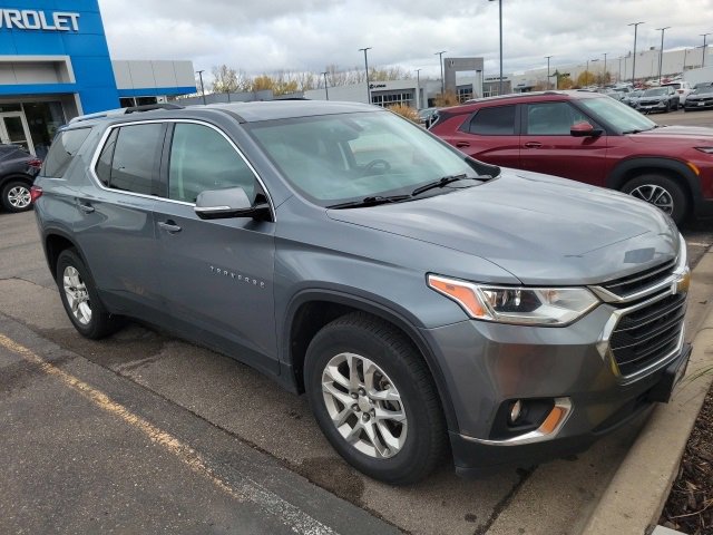 This Traverse is well equipped with Preferred Equipment Group 1LT, Trailering Equipment (Heavy-Duty Cooling System), Floor Liner Package (LPO) (1st & 2nd Row All-Weather Floor Liner (LPO) and 3rd Row All-Weather Floor Liner (LPO)), Front License Plate Bracket Mounting Package, 7-Passenger Seating (2-2-3 Seating Configuration), Apple CarPlay/Android Auto, Power Liftgate, 3.49 Axle Ratio, 3rd row seats: split-bench, 4-Wheel Disc Brakes, 6 Speakers, ABS brakes, Air Conditioning, Alloy wheels, AM/FM radio: SiriusXM, Automatic temperature control, Brake assist, Bumpers: body-color, Compass, Delay-off headlights, Driver door bin, Driver vanity mirror, Dual front impact airbags, Dual front side impact airbags, Electronic Stability Control, Emergency communication system: OnStar Guidance, Exterior Parking Camera Rear, Four wheel independent suspension, Front anti-roll bar, Front Bucket Seats, Front Center Armrest, Front dual zone A/C, Front fog lights, Front reading lights, Fully automatic headlights, Garage door transmitter, Heated door mirrors, Heated front seats, High-Intensity Discharge Headlights, Illuminated entry, Low tire pressure warning, Occupant sensing airbag, Outside temperature display, Overhead airbag, Overhead console, Panic alarm, Passenger door bin, Passenger vanity mirror, Power door mirrors, Power driver seat, Power steering, Power windows, Premium Cloth Seat Trim, Radio data system, Radio: Chevrolet MyLink AM/FM Stereo w/8 Screen, Rear air conditioning, Rear anti-roll bar, Rear reading lights, Rear window defroster, Rear window wiper, Remote keyless entry, Roof rack: rails only, Security system, SiriusXM Satellite Radio, Speed control, Speed-sensing steering, Spoiler, Steering wheel mounted audio controls, Tachometer, Telescoping steering wheel, Tilt steering wheel, Traction control, Trip computer, Turn signal indicator mirrors, Variably intermittent wipers, Voltmeter, and Wheels: 18 Bright Silver Machined Painted Alum.