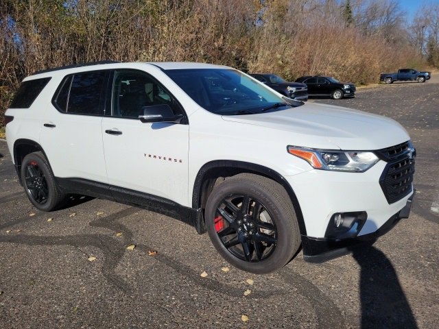 Recent Arrival! CARFAX One-Owner. Summit White 2018 Chevrolet Traverse 4D Sport Utility Premier 3.6L V6 SIDI VVT AWD Odometer is 43153 miles below market average! Clean CARFAX.7-Passenger Seating (2-2-3 Seating Configuration), Apple CarPlay/Android Auto, Bose Premium 10-Speaker Audio System Feature, Dual SkyScape 2-Panel Power Sunroof, Heated front seats, Heated rear seats, Heated steering wheel, Navigation System, Perforated Leather-Appointed Seat Trim, Preferred Equipment Group 1LZ, Redline Edition, Trailering Equipment, Wheels: 20 Gloss Black Painted Alum w/Red Stripes.This Traverse is well equipped with Preferred Equipment Group 1LZ, Redline Edition (Dual SkyScape 2-Panel Power Sunroof, Wheels: 20 Gloss Black Painted Alum w/Red Stripes, Black Door Handles, and Ornamentation), Trailering Equipment (Heavy-Duty Cooling System), Floor Liner Package (LPO) (1st & 2nd Row All-Weather Floor Liner (LPO) and 3rd Row All-Weather Floor Liner (LPO)), Front License Plate Bracket Mounting Package, 7-Passenger Seating (2-2-3 Seating Configuration), Apple CarPlay/Android Auto, Bose Premium 10-Speaker Audio System Feature, Heated front seats, Heated rear seats, Heated steering wheel, Navigation System, Perforated Leather-Appointed Seat Trim, 10 Speakers, 3.49 Axle Ratio, 3rd row seats: split-bench, 4-Wheel Disc Brakes, ABS brakes, Air Conditioning, Alloy wheels, AM/FM radio: SiriusXM, Auto High-beam Headlights, Auto-dimming door mirrors, Auto-dimming Rear-View mirror, Automatic temperature control, Brake assist, Bumpers: body-color, Compass, Delay-off headlights, Driver door bin, Driver vanity mirror, Dual front impact airbags, Dual front side impact airbags, Electronic Stability Control, Emergency communication system: OnStar Guidance, Four wheel independent suspension, Front anti-roll bar, Front Bucket Seats, Front Center Armrest, Front dual zone A/C, Front fog lights, Front reading lights, Fully automatic headlights, Garage door transmitter, Heated door mirrors, Illuminated entry, Low tire pressure warning, Memory seat, Occupant sensing airbag, Outside temperature display, Overhead airbag, Overhead console, Painted Body-Color Front/Rear Splash Guards (LPO), Panic alarm, Passenger door bin, Passenger vanity mirror, Power door mirrors, Power driver seat, Power Liftgate, Power passenger seat, Power steering, Power windows, Premium audio system: Chevrolet MyLink, Radio data system, Radio: Chevrolet MyLink AM/FM Stereo w/Navigation, Rear air conditioning, Rear anti-roll bar, Rear reading lights, Rear window defroster, Rear window wiper, Remote keyless entry, Roof rack: rails only, Security system, SiriusXM Satellite Radio, Speed control, Speed-sensing steering, Spoiler, Steering wheel memory, Steering wheel mounted audio controls, Tachometer, Telescoping steering wheel, Tilt steering wheel, Traction control, Trip computer, Turn signal indicator mirrors, Variably intermittent wipers, Ventilated front seats, and Voltmeter.