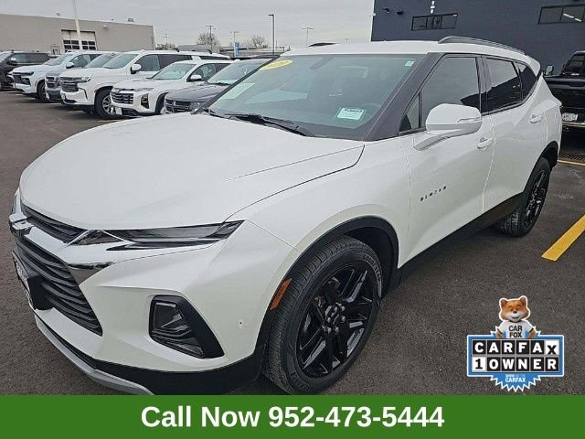 This Blazer is well equipped with Convenience & Driver Confidence Package (Black Roof Rails, Heated Driver & Front Passenger Seats, Inside Rear-View Auto-Dimming Mirror, Lane Change Alert w/Side Blind Zone Alert, Outside Heated Power-Adjustable Body-Color Mirrors, Rear Cross Traffic Alert, Rear Park Assist w/Audible Warning, Rear Power Programmable Liftgate, Remote Start, and Universal Home Remote), Interior Luxury Package (LPO) (Illuminated Front Door Sill Plates (LPO) and Premium Carpeted Floor Mats), Preferred Equipment Group 2LT, Trailering Equipment (Heavy-Duty Cooling System and Hitch Guidance), 170 Amp Alternator, 4-Wheel Disc Brakes, 6 Speakers, 6-Speaker Audio System Feature, ABS brakes, Air Conditioning, Alloy wheels, AM/FM radio: SiriusXM, Apple CarPlay/Android Auto, Automatic temperature control, Brake assist, Bumpers: body-color, Child-Seat-Sensing Airbag, Compass, Delay-off headlights, Driver door bin, Driver vanity mirror, Dual front impact airbags, Dual front side impact airbags, Electronic Stability Control, Emergency communication system: OnStar and Chevrolet connected services capable, Exterior Parking Camera Rear, Four wheel independent suspension, Front anti-roll bar, Front Bucket Seats, Front Center Armrest, Front dual zone A/C, Front reading lights, Fully automatic headlights, Heated door mirrors, High-Intensity Discharge Headlights, Illuminated entry, Knee airbag, Leather Shift Knob, Low tire pressure warning, Occupant sensing airbag, Outside temperature display, Overhead airbag, Overhead console, Panic alarm, Passenger door bin, Passenger vanity mirror, Power door mirrors, Power driver seat, Power steering, Power windows, Premium Cloth Seat Trim, Radio data system, Radio: Chevrolet Infotainment 3 System, Rear anti-roll bar, Rear reading lights, Rear seat center armrest, Rear window defroster, Rear window wiper, Remote keyless entry, Ride & Handling Suspension, Security system, SiriusXM Radio, Speed control, Speed-sensing steering, Split folding rear seat, Spoiler, Steering wheel mounted audio controls, Tachometer, Telescoping steering wheel, Tilt steering wheel, Traction control, Trip computer, Variably intermittent wipers, Voltmeter, Wheels: 18 Bright Silver Aluminum, Wheels: 20 Gloss Black Aluminum (LPO), and Wheels: 20 Transit.