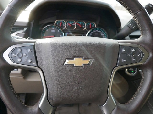 This Suburban is well equipped with Enhanced Driver Alert Package (Automatic Emergency Braking, Forward Collision Alert, Lane Keep Assist w/Lane Departure Warning, Safety Alert Seat, and IntelliBeam w/Automatic High Beam On/Off), Luxury Package (3rd Row 60/40 Power Fold Split-Bench, Front & Rear Park Assist, Hands-Free Power Liftgate, Heated 2nd Row Outboard Seats, Heated Leather Wrapped Steering Wheel, Lane Change Alert w/Side Blind Zone Alert, Memory Settings, Rear Cross Traffic Alert, Fog Lamps, Passive Entry System, Power Folding & Adjustable Heated Outside Mirrors, Power Tilt & Telescoping Steering Column, and Push Button Keyless Start), Max Trailering Package (3.42 Rear Axle Ratio, Integrated Trailer Brake Controller, and 2-Speed Active Electronic AutoTrac Transfer Case), Preferred Equipment Group 1LT (12-Volt Auxiliary Power Outlet (5), Bose Premium Audio System Feature, Power Liftgate, Rear Park Assist w/Audible Warning, Remote Vehicle Start, Universal Home Remote, 1st & 2nd Row Color-Keyed Carpeted Floor Mats, 4-Wheel Antilock Disc Brakes, 6-Way Power Front Passenger Seat Adjuster, Auto-Dimming Inside Rear-View Mirror, Black Assist Steps, Color-Keyed Carpeting Floor Covering, Driver Inboard & Front Passenger Airbags, Electronic Cruise Control w/Set & Resume Speed, Extended-Range Remote Keyless Entry, Floor Console w/Storage Area, HD Radio, Leather-Wrapped Steering Wheel, Power-Adjustable Accelerator & Brake Pedals, Roof-Mounted Luggage Rack Side Rails, and SiriusXM Radio), Apple CarPlay/Android Auto, Power Release 2nd Row Bucket Seats, Wheels: 20 x 9 Polished-Aluminum, 3rd row seats: split-bench, 4-Wheel Disc Brakes, 9 Speakers, ABS brakes, Adjustable pedals, Air Conditioning, Alloy wheels, AM/FM radio: SiriusXM, Auto High-beam Headlights, Auto-dimming Rear-View mirror, Automatic temperature control, Brake assist, Bumpers: body-color, CD player, Compass, Delay-off headlights, Driver door bin, Driver vanity mirror, Dual front impact airbags, Dual front side impact airbags, Electronic Stability Control, Emergency communication system: OnStar and Chevrolet connected services capable, Exterior Parking Camera Rear, Front anti-roll bar, Front Bucket Seats, Front Center Armrest, Front dual zone A/C, Front reading lights, Front wheel independent suspension, Fully automatic headlights, Garage door transmitter, Heated door mirrors, Heated Front Reclining Bucket Seats, Heated front seats, Illuminated entry, Leather steering wheel, Leather-Appointed Seat Trim, Low tire pressure warning, Memory seat, Occupant sensing airbag, Outside temperature display, Overhead airbag, Overhead console, Panic alarm, Passenger door bin, Passenger vanity mirror, Pedal memory, Power door mirrors, Power driver seat, Power passenger seat, Power steering, Power windows, Radio: AM/FM Stereo w/Chevrolet Infotainment, Rain sensing wipers, Rear air conditioning, Rear anti-roll bar, Rear reading lights, Rear seat center armrest, Rear window defroster, Rear window w