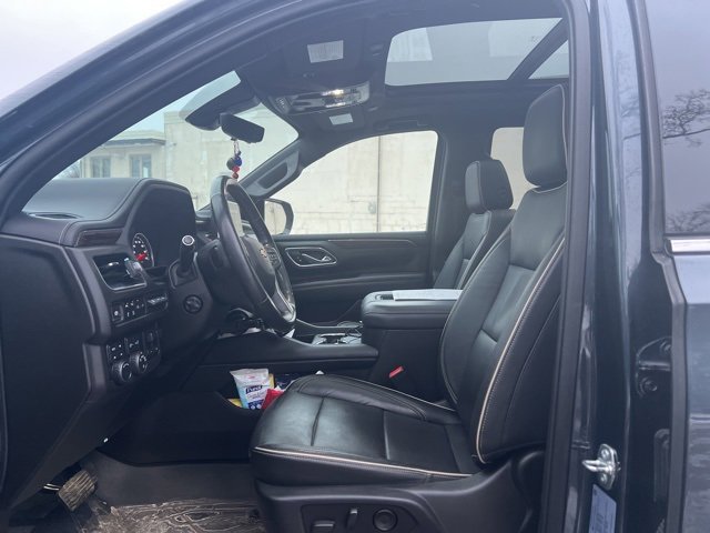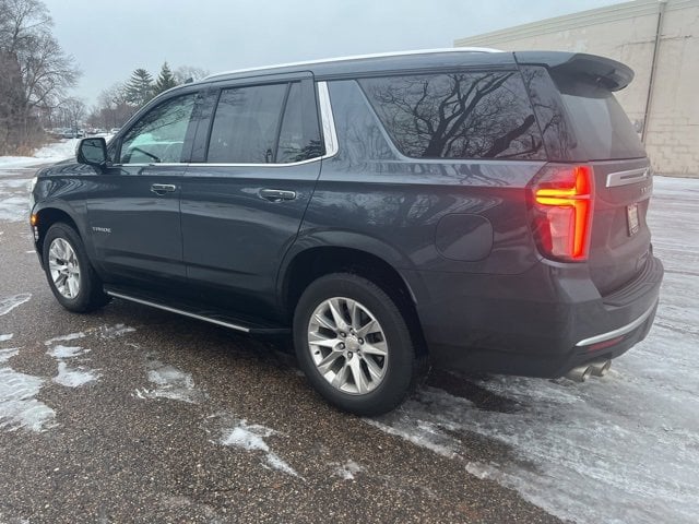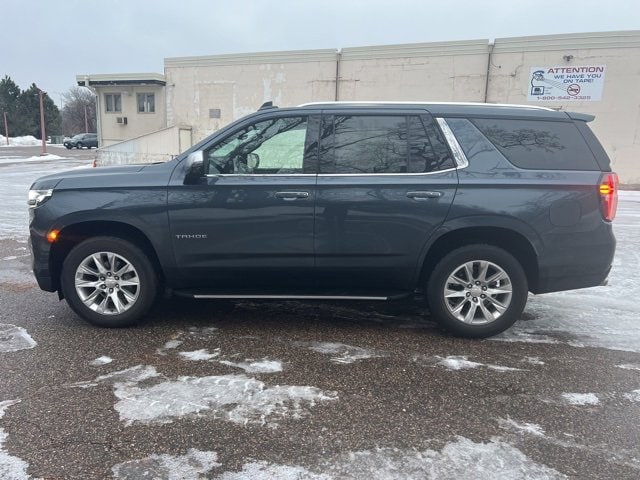Recent Arrival! Shadow Gray Metallic 2021 Chevrolet Tahoe 4D Sport Utility Premier EcoTec3 5.3L V8 4WD Clean CARFAX.15 Diagonal Multi-Color Head-Up Display, 2-Speed Active Electronic AutoTrac Transfer Case, Adaptive Cruise Control, Advanced Trailering Package, Advanced Trailering System, Automatic Heated Steering Wheel, Dual-Pane Power Panoramic Sunroof, Enhanced Automatic Emergency Braking, Enhanced Display & Alert Package, Front & Rear Park Assist, Hands-Free Rear Power Programmable Liftgate, HD Surround Vision, Heated & Ventilated Driver & Front Passenger Seats, Heated 2nd Row Outboard Seats, Hitch Guidance w/Hitch View, Integrated Trailer Brake Controller, Lane Change Alert w/Side Blind Zone Alert, Lane Keep Assist w/Lane Departure Warning, Max Trailering Package, Navigation System, Power Release 2nd Row Bucket Seats, Preferred Equipment Group 1LZ, Premium Package, Rear Cross Traffic Alert, Rear Pedestrian Alert, Remote Start, Safety Alert Seat, Trailer Side Blind Zone Alert.This Tahoe is well equipped with Advanced Trailering Package (Advanced Trailering System, Hitch Guidance w/Hitch View, Integrated Trailer Brake Controller, and Trailer Side Blind Zone Alert), Enhanced Display & Alert Package (15 Diagonal Multi-Color Head-Up Display, HD Surround Vision, Rear Pedestrian Alert, Inside Rearview Auto-Dimming Rear Camera Mirror, and Rear Camera Mirror Washer), Max Trailering Package (Extra Capacity Cooling System), Preferred Equipment Group 1LZ (2-Speed Active Electronic AutoTrac Transfer Case, Automatic Heated Steering Wheel, Front & Rear Park Assist, Hands-Free Rear Power Programmable Liftgate, Heated 2nd Row Outboard Seats, Lane Change Alert w/Side Blind Zone Alert, Lane Keep Assist w/Lane Departure Warning, Power Release 2nd Row Bucket Seats, Rear Cross Traffic Alert, Remote Start, Safety Alert Seat, 1st & 2nd Row Color-Keyed Carpeted Floor Mats, 2 USB Data Ports, 3rd Row 60/40 Power-Folding Split-Bench Seat, Auto-Dimming Inside Rear-View Mirror, Bright Front & Rear Door Sill Plates, Chrome Door Handles w/Body-Color Strip, Chrome Mirror Caps, Color-Keyed Carpeting Floor Covering, Driver & Front Outboard Passenger Airbags, Dual Exhaust System, Enhanced Driver Information Center, Floor Console w/Storage Area, HD Radio, Hill Descent Control, Infotainment Display, Leather-Wrapped Steering Wheel, LED Daytime Running Lamps, Memory Settings, Outside Heated Power-Adjustable Mirrors, Power Tilt & Telescopic Steering Column, SiriusXM NavTraffic, SiriusXM Radio w/360L, and Universal Home Remote), Premium Package (Adaptive Cruise Control, Dual-Pane Power Panoramic Sunroof, and Enhanced Automatic Emergency Braking), License Plate Front Mounting Package, Heated & Ventilated Driver & Front Passenger Seats, Navigation System, 10 Speakers, 12-Way Power Driver & Passenger Seat Adjusters, 20 x 9 Polished Aluminum Wheels, 3.23 Rear Axle Ratio, 3rd row seats: split-bench, 4-Wheel Disc Brakes, ABS brakes, Adaptive suspension, Air Conditioning, Alloy wheels, AM/FM radio: SiriusXM with 360L, Apple CarPlay/Android Auto, Auto High-beam Headlights, Auto-dimming door mirrors, Auto-dimming Rear-View mirror, Auto-leveling suspension, Automatic temperature control, Bose 10-Speaker Centerpoint Surround Audio Sys Ft, Brake assist, Bumpers: body-color, Compass, Delay-off headlights, Driver door bin, Driver vanity mirror, Dual front impact airbags, Dual front side impact airbags, Electronic Stability Control, Emergency communication system: OnStar and Chevrolet connected services capable, Four wheel independent suspension, Front & Rear Black Bowtie Emblems (LPO), Front anti-roll bar, Front Bucket Seats, Front Center Armrest, Front dual zone A/C, Front High-Back Reclining Bucket Seats, Front reading lights, Fully automatic headlights, Garage door transmitter, Heated door mirrors, Heated Driver & Front Passenger Seats, Heated front seats, Heated rear seats, Heated steering wheel, Illuminated entry, Leather steering wheel, Low tire pr