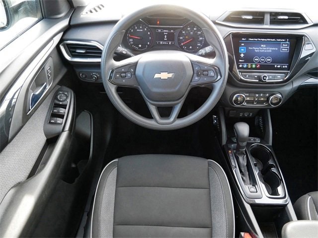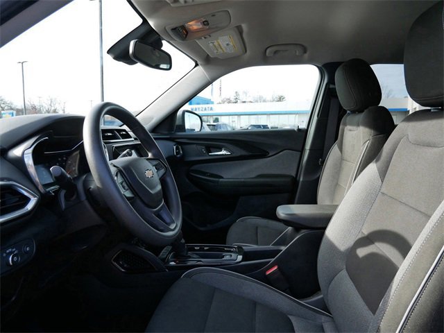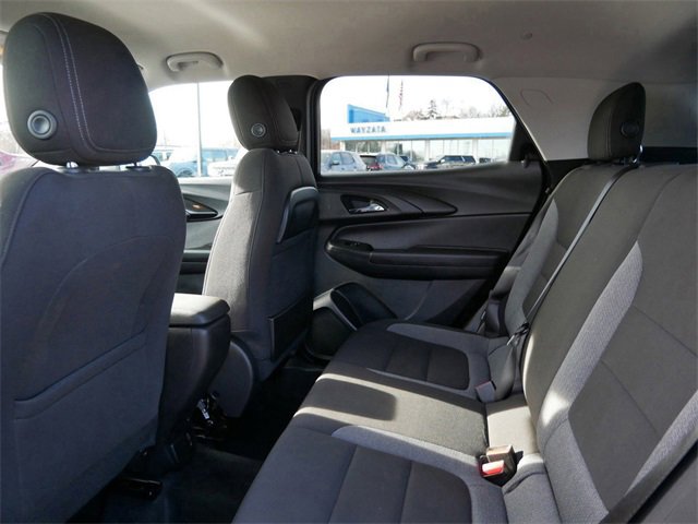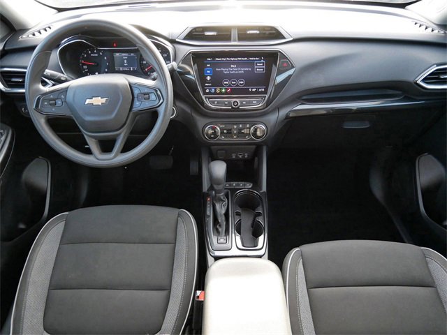 This TrailBlazer is well equipped with Convenience Package (120-Volt Power Outlet, 1 Type-A & 1 Type-C USB Charging-Only Ports, 8 Diagonal Color Touchscreen Display, Cabin Humidity Sensor, Driver & Front Passenger Illuminated Vanity Mirrors, Inside Rear-View Auto-Dimming Mirror, Single-Zone Auto Climate Control Air Conditioning, and SiriusXM Radio), Driver Confidence Package (Lane Change Alert w/Side Blind Zone Alert, Rear Cross Traffic Alert, and Rear Park Assist), Preferred Equipment Group 1LT, 8-Way Power Driver Seat Adjuster, 2-Way Power Driver Lumbar Seat Adjuster, 3.17 Axle Ratio, 4-Way Manual Front Passenger Seat Adjuster, 4-Wheel Disc Brakes, 6 Speakers, 6-Speaker Audio System Feature w/Amplifier, ABS brakes, Air Conditioning, Alloy wheels, AM/FM radio, Apple CarPlay/Android Auto, Auto High-beam Headlights, Brake assist, Bumpers: body-color, Cloth Seat Trim, Compass, Delay-off headlights, Driver door bin, Driver vanity mirror, Dual front impact airbags, Dual front side impact airbags, Electronic Stability Control, Emergency communication system: OnStar and Chevrolet connected services capable, Exterior Parking Camera Rear, Flat-Folding Front Passenger Seatback, Front & Rear All-Weather Floor Liners (LPO), Front anti-roll bar, Front Bucket Seats, Front Center Armrest, Front fog lights, Front License Plate Bracket, Front reading lights, Front wheel independent suspension, Fully automatic headlights, Heated door mirrors, Heated Driver & Front Passenger Seats, Heated front seats, Illuminated entry, Knee airbag, Low tire pressure warning, Occupant sensing airbag, Overhead airbag, Overhead console, Panic alarm, Passenger door bin, Passenger vanity mirror, Power door mirrors, Power driver seat, Power steering, Power windows, Radio data system, Radio: Chevrolet Infotainment 3 System, Rear side impact airbag, Rear window defroster, Rear window wiper, Remote keyless entry, Ride & Handling Suspension, Roof rack: rails only, Security system, Speed control, Split folding rear seat, Spoiler, Steering wheel mounted audio controls, Tachometer, Telescoping steering wheel, Tilt steering wheel, Traction control, Trip computer, Variably intermittent wipers, Wheels: 17 High Gloss Black Machined Aluminum, and Wireless Apple CarPlay/Android Auto.