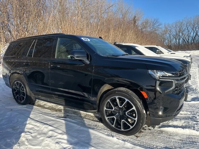 This Tahoe is well equipped with Driver Alert Package (Lane Change Alert w/Side Blind Zone Alert and Rear Cross Traffic Alert), Luxury Package (HD Surround Vision, Heated 2nd Row Outboard Seats, Heated Steering Wheel, Rear Pedestrian Alert, 3rd Row 60/40 Power-Folding Split-Bench Seat, Memory Settings, Outside Heated Power-Adjustable Mirrors, and Power Tilt & Telescopic Steering Column), Preferred Equipment Group 1SP (Automatic Stop/Start, Bose 9-Speaker Stereo Audio System Feature, Enhanced Driver Information Center, Hands-Free Rear Power Programmable Liftgate, Remote Start, Start/Stop System Disable Button, Wireless Charging, 1st & 2nd Row Color-Keyed Carpeted Floor Mats, Auto-Dimming Inside Rear-View Mirror, Bright Front & Rear Door Sill Plates, Color-Keyed Carpeting Floor Covering, Driver & Front Outboard Passenger Airbags, Floor Console w/Storage Area, Infotainment Display, Leather-Wrapped Steering Wheel, LED Daytime Running Lamps, Memory Settings for Driver, SiriusXM Radio w/360L, and Universal Home Remote), License Plate Front Mounting Package, Dual-Pane Power Panoramic Sunroof, Heated Driver & Front Passenger Seats, Navigation System, Power Release 2nd Row Bucket Seats, Set of 4 Wheel Locks (LPO), Wheels: 22 x 9 Bright Machined, 10-Way Power Driver & Passenger Seat Adjusters, 3.23 Rear Axle Ratio, 3rd row seats: split-bench, 4-Wheel Disc Brakes, 9 Speakers, ABS brakes, Air Conditioning, Alloy wheels, AM/FM radio: SiriusXM with 360L, Apple CarPlay/Android Auto, Auto High-beam Headlights, Auto-dimming Rear-View mirror, Automatic temperature control, Brake assist, Bumpers: body-color, Compass, Delay-off headlights, Driver door bin, Driver vanity mirror, Dual front impact airbags, Dual front side impact airbags, Electronic Stability Control, Emergency communication system: OnStar and Chevrolet connected services capable, Four wheel independent suspension, Front anti-roll bar, Front Bucket Seats, Front Center Armrest, Front dual zone A/C, Front High-Back Reclining Bucket Seats, Front reading lights, Fully automatic headlights, Garage door transmitter, Heated door mirrors, Heated front seats, Illuminated entry, Leather steering wheel, Low tire pressure warning, Memory seat, Not Equipped w/Heated Steering Wheel (DISC), Not Equipped w/Steering Column Lock, Occupant sensing airbag, Outside temperature display, Overhead airbag, Overhead console, Panic alarm, Passenger door bin, Passenger vanity mirror, Perforated Leather Seat Trim, Power door mirrors, Power driver seat, Power Liftgate, Power passenger seat, Power steering, Power windows, Premium audio system: Chevrolet Infotainment System 3, Premium Smooth Ride Suspension, Radio: Chevrolet Infotainment 3 Premium System, Rain sensing wipers, Rear air conditioning, Rear anti-roll bar, Rear reading lights, Rear seat center armrest, Rear window defroster, Rear window wiper, Remote keyless entry, Roof rack: rails only, Security system, Speed control, Speed-sensing steering, Split folding rear seat, Spoiler, Steering wheel mounted audio controls, Tachometer, Telescoping steering wheel, Tilt steering wheel, Tract