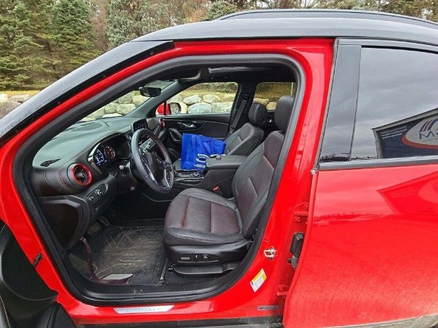 Recent Arrival! CARFAX One-Owner. Red Hot 2023 Chevrolet Blazer 4D Sport Utility RS 3.6L V6 SIDI AWD Odometer is 34791 miles below market average! Clean CARFAX.Adaptive Cruise Control, Black 2-Tone Roof, Bose Premium 8-Speaker Audio System Feature, Driver Confidence II Package, Enhanced Automatic Emergency Braking, Enhanced Convenience Package, HD Surround Vision, Heated Rear Outboard Seating Positions, Heated Steering Wheel, Memory Settings For Driver Seat & Exterior Mirrors, Navigation System, Power Liftgate, Power Panoramic Tilt-Sliding Sunroof, Preferred Equipment Group 1RS, Rear Camera Mirror, Rear Park Assist w/Audible Warning, Safety Alert Seat, Ventilated Driver & Front Passenger Seats, Wheels: 21 High Gloss Black w/Machined Face.This Blazer is well equipped with Driver Confidence II Package (Adaptive Cruise Control, Enhanced Automatic Emergency Braking, HD Surround Vision, Rear Camera Mirror, Safety Alert Seat, and Rear Camera Mirror Washer), Enhanced Convenience Package (Heated Rear Outboard Seating Positions, Memory Settings For Driver Seat & Exterior Mirrors, Ventilated Driver & Front Passenger Seats, and Power Tilt & Telescoping Steering Column), Preferred Equipment Group 1RS (Heated Steering Wheel and Rear Park Assist w/Audible Warning), Black 2-Tone Roof, Bose Premium 8-Speaker Audio System Feature, Navigation System, Power Liftgate, Power Panoramic Tilt-Sliding Sunroof, Wheels: 21 High Gloss Black w/Machined Face, 3.49 Final Drive Axle Ratio, 4-Wheel Disc Brakes, 6-Way Power Front Passenger Seat Adjuster, 8 Speakers, 8-Way Power Driver Seat Adjuster, ABS brakes, Air Conditioning, Alloy wheels, AM/FM radio: SiriusXM with 360L, Apple CarPlay/Android Auto, Auto High-beam Headlights, Auto-dimming door mirrors, Auto-dimming Rear-View mirror, Automatic temperature control, Brake assist, Bumpers: body-color, Child-Seat-Sensing Airbag, Compass, Delay-off headlights, Driver door bin, Driver vanity mirror, Dual front impact airbags, Dual front side impact airbags, Electronic Stability Control, Emergency communication system: OnStar and Chevrolet connected services capable, Four wheel independent suspension, Front anti-roll bar, Front Bucket Seats, Front Center Armrest, Front dual zone A/C, Front reading lights, Fully automatic headlights, Garage door transmitter, Heated door mirrors, Heated Driver & Front Passenger Seats, Heated front seats, Heated steering wheel, Illuminated entry, Knee airbag, Leather Shift Knob, Low tire pressure warning, Not Equipped w/Rear Park Assist, Occupant sensing airbag, Outside temperature display, Overhead airbag, Overhead console, Panic alarm, Passenger door bin, Passenger vanity mirror, Perforated Leather-Appointed Seat Trim, Power door mirrors, Power Driver Lumbar Control, Power driver seat, Power passenger seat, Power steering, Power windows, Premium audio system: Chevrolet Infotainment 3 Premium, Radio data system, Radio: Chevrolet Infotainment 3 Premium System, Rear anti-roll bar, Rear reading lights, Rear seat center armrest, Rear window defroster, Rear window wiper, Remote keyless entry, Ride & Handling Suspension, Security system, SiriusXM w/360L, Speed control, Speed-sensing steering, Split folding rear seat, Spoiler, Steering wheel mounted audio controls, Tachometer, Telescoping steering wheel, Tilt steering wheel, Traction control, Trip computer, Turn signal indicator mirrors, Variably intermittent wipers, Voltmeter, and Wheels: 20 Technical Gray Aluminum.
