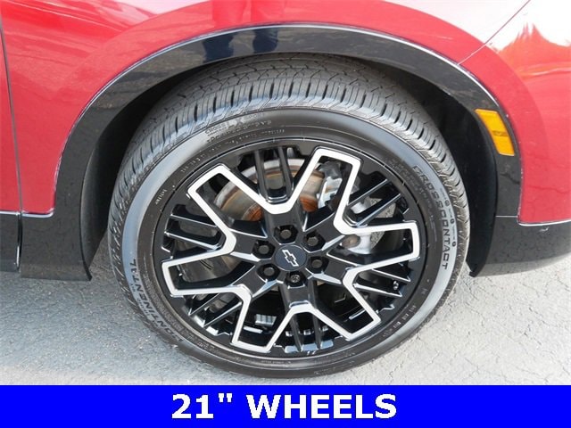 6-Way Power Front Passenger Seat Adjuster, 8-Way Power Driver Seat Adjuster, Apple CarPlay/Android Auto, Auto-dimming door mirrors, Automatic temperature control, Black Lug Nut & Wheel Lock Kit (LPO), Bose Premium 8-Speaker Audio System Feature, Compass, Dual front impact airbags, Dual front side impact airbags, Electronic Stability Control, Fully automatic headlights, Garage door transmitter, Heated door mirrors, Heated Driver & Front Passenger Seats, Heated Steering Wheel, Knee airbag, Navigation System, Outside temperature display, Overhead airbag, Perforated Leather-Appointed Seat Trim, Power door mirrors, Power Liftgate, Preferred Equipment Group 1RS, Radio: Chevrolet Infotainment 3 Premium System, Rear Park Assist w/Audible Warning, Security system, SiriusXM w/360L, Wheels: 21 High Gloss Black w/Machined Face.