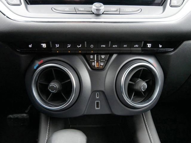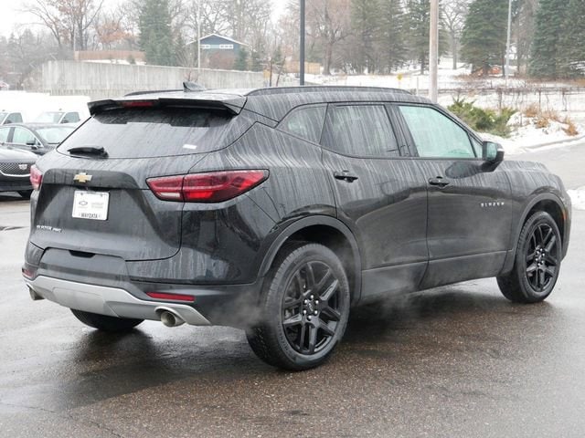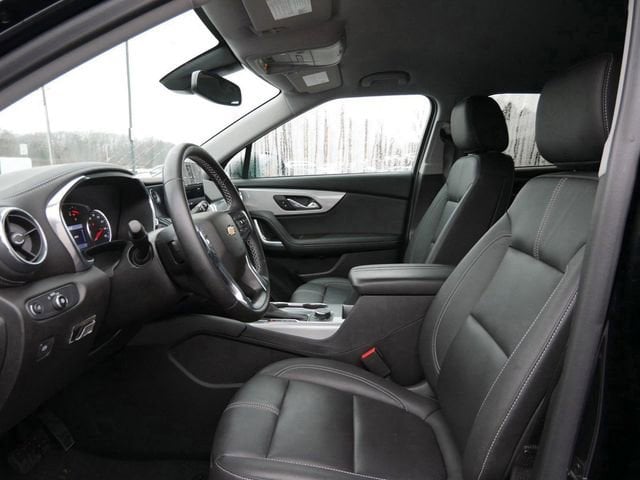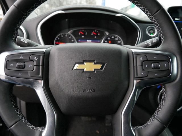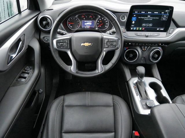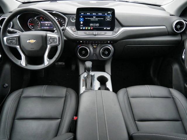 This Blazer is well equipped with Driver Confidence Package (Lane Change Alert w/Side Blind Zone Alert, Rear Cross Traffic Alert, and Rear Park Assist w/Audible Warning), Preferred Equipment Group 3LT (6-Way Power Front Passenger Seat Adjuster, Black Roof-Mounted Side Rails, Heated Driver & Front Passenger Seats, Inside Rear-View Auto-Dimming Mirror, Outside Heated Power-Adjustable Body-Color Mirrors, Rear Power Programmable Liftgate, and Universal Home Remote), Apple CarPlay/Android Auto, Wheels: 20 Gloss Black Aluminum, 170 Amp Alternator, 4-Wheel Disc Brakes, 6 Speakers, 6-Speaker Audio System Feature, 8-Way Power Driver Seat Adjuster, ABS brakes, Air Conditioning, Alloy wheels, AM/FM radio: SiriusXM with 360L, Auto High-beam Headlights, Auto-dimming door mirrors, Auto-dimming Rear-View mirror, Automatic temperature control, Brake assist, Bumpers: body-color, Child-Seat-Sensing Airbag, Compass, Delay-off headlights, Driver door bin, Driver vanity mirror, Dual front impact airbags, Dual front side impact airbags, Electronic Stability Control, Emergency communication system: OnStar and Chevrolet connected services capable, Engine Block Heater, Four wheel independent suspension, Front anti-roll bar, Front Bucket Seats, Front Center Armrest, Front dual zone A/C, Front reading lights, Fully automatic headlights, Garage door transmitter, Heated door mirrors, Heated front seats, Illuminated entry, Knee airbag, Leather Shift Knob, Low tire pressure warning, Occupant sensing airbag, Outside temperature display, Overhead airbag, Overhead console, Panic alarm, Passenger door bin, Passenger vanity mirror, Perforated Leather-Appointed Seat Trim, Power door mirrors, Power Driver Lumbar Control, Power driver seat, Power Liftgate, Power passenger seat, Power steering, Power windows, Premium audio system: Chevrolet Infotainment 3 Plus, Radio data system, Radio: Chevrolet Infotainment 3 Plus System, Rear anti-roll bar, Rear reading lights, Rear seat center armrest, Rear window defroster, Rear window wiper, Remote keyless entry, Ride & Handling Suspension, Security system, SiriusXM w/360L, Speed control, Speed-sensing steering, Split folding rear seat, Spoiler, Steering wheel mounted audio controls, Tachometer, Telescoping steering wheel, Tilt steering wheel, Traction control, Trip computer, Turn signal indicator mirrors, Variably intermittent wipers, and Voltmeter.