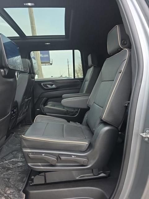 This Suburban is well equipped with Advanced Technology Package (Enhanced Automatic Parking Assist, Reverse Automatic Braking, Super Cruise, Adaptive Cruise Control, and Enhanced Automatic Emergency Braking), Advanced Trailering Package (Hitch Guidance w/Hitch View, Integrated Trailer Brake Controller, Smart Trailer Integration Indicator, and Trailer Side Blind Zone Alert), Enhanced Display & Alert Package (15 Diagonal Multi-Color Head-Up Display, HD Surround Vision, Rear Camera Mirror Washer, Rear Pedestrian Alert, and Inside Rearview Auto-Dimming Rear Camera Mirror), Max Trailering Package (Extra Capacity Cooling System), Preferred Equipment Group 1LZ (2-Speed Active Electronic AutoTrac Transfer Case, 3rd Row 60/40 Power-Folding Split-Bench, Bose 10-Speaker Surround w/CenterPoint, Enhanced Driver Information Center, Hands-Free Rear Power Programmable Liftgate, Heated & Ventilated Driver & Front Passenger Seats, Heated 2nd Row Outboard Seats, Heated Steering Wheel, Hill Descent Control, Lane Change Alert w/Side Blind Zone Alert, Memory Settings, Power Release 2nd Row Bucket Seats, Rear Cross Traffic Alert, Remote Start, Safety Alert Seat, Wireless Charging, 1st & 2nd Row Color-Keyed Carpeted Floor Mats, Auto-Dimming Inside Rear-View Mirror, Bright Front & Rear Door Sill Plates, Chrome Door Handles w/Body-Color Strip, Chrome Mirror Caps, Color-Keyed Carpeting Floor Covering, Driver & Front Outboard Passenger Airbags, Dual Exhaust System, Floor Console, Heated Driver & Front Passenger Seats, Infotainment Display, LED Daytime Running Lamps, Outside Heated Power-Adjustable Mirrors, Power Tilt & Telescopic Steering Column, SiriusXM Radio w/360L, Universal Home Remote, and Wrapped Steering Wheel), Dual-Pane Power Panoramic Sunroof, Navigation System, Rear Seat Media System, 10 Speakers, 1st, 2nd & 3rd Row All-Weather Floor Liners (LPO), 20 x 9 Polished Aluminum Wheels, 3.23 Rear Axle Ratio, 3rd row seats: split-bench, 4-Wheel Disc Brakes, ABS brakes, Adaptive suspension, Air Conditioning, Alloy wheels, AM/FM radio: SiriusXM with 360L, Apple CarPlay/Android Auto, Auto High-beam Headlights, Auto-dimming door mirrors, Auto-dimming Rear-View mirror, Auto-leveling suspension, Automatic temperature control, Brake assist, Bumpers: body-color, Compass, Delay-off headlights, Driver door bin, Driver vanity mirror, Dual front impact airbags, Dual front side impact airbags, Electronic Stability Control, Emergency communication system: OnStar and Chevrolet connected services capable, Four wheel independent suspension, Front anti-roll bar, Front Bucket Seats, Front Center Armrest, Front dua