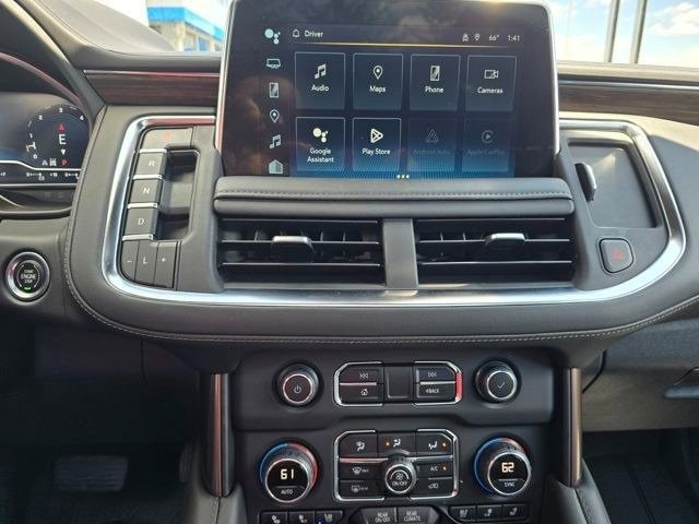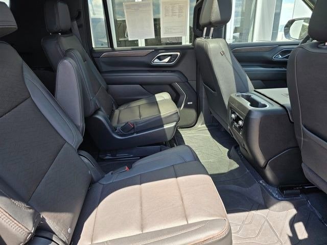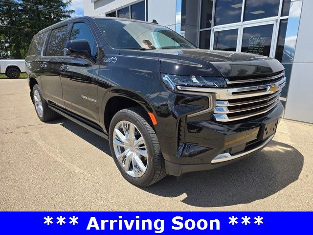 This Suburban is well equipped with Advanced Trailering Package (Integrated Trailer Brake Controller, Smart Trailer Integration Indicator, Trailer Side Blind Zone Alert, and Hitch Guidance w/Hitch View), High Country Deluxe (Air Ride Adaptive Suspension, Dual-Pane Power Panoramic Sunroof, and Power-Retractable Assist Steps), Max Trailering Package (Extra Capacity Cooling System), Preferred Equipment Group 3LZ (15 Diagonal Multi-Color Head-Up Display, 2-Speed Active Electronic AutoTrac Transfer Case, Enhanced Automatic Emergency Braking, Enhanced Driver Information Center, Hands-Free Rear Power Programmable Liftgate, HD Surround Vision, Heated & Ventilated Driver & Front Passenger Seats, Heated 2nd Row Outboard Seats, Heated Driver & Front Passenger Seats, Heated Steering Wheel, Lane Change Alert w/Side Blind Zone Alert, Power Release 2nd Row Bucket Seats, Rear Cross Traffic Alert, Rear Pedestrian Alert, Remote Start, Safety Alert Seat, 1st & 2nd Row Color-Keyed Carpeted Floor Mats, 3rd Row 60/40 Power-Folding Split-Bench, Bose 10-Speaker Surround w/CenterPoint, Bright Front & Rear Door Sill Plates, Chrome Door Handles w/Body-Color Strip, Color-Keyed Carpeting Floor Covering, Driver & Front Outboard Passenger Airbags, Dual Exhaust System, Floor Console, Hill Descent Control, Infotainment Display, Inside Rearview Auto-Dimming Rear Camera Mirror, LED Daytime Running Lamps, Memory Settings, Outside Heated Power-Adjustable Mirrors, Power Tilt & Telescopic Steering Column, Rear Camera Mirror Washer, SiriusXM Radio w/360L, Universal Home Remote, Wireless Charging, and Wrapped Steering Wheel), License Plate Front Mounting Package, Adaptive Cruise Control, Navigation System, 10 Speakers, 3.23 Rear Axle Ratio, 3rd row seats: split-bench, 4-Wheel Disc Brakes, ABS brakes, Adaptive suspension, Air Conditioning, Alloy wheels, AM/FM radio: SiriusXM with 360L, Apple CarPlay/Android Auto, Auto High-beam Headlights, Auto-dimming door mirrors, Auto-dimming Rear-View mirror, Auto-leveling suspension, Automatic temperature control, Brake assist, Bumpers: body-color, Compass, Delay-off headlights, Driver door bin, Driver vanity mirror, Dual front impact airbags, Dual front side impact airbags, Electronic Stability Control, Emergency communication system: OnStar and Chevrolet connected services capable, Exterior Parking Camera Rear, Four wheel independent suspension, Front anti-roll bar, Front Bucket Seats, Front Center Armrest, Front dual zone A/C, Front reading lights, Fully automatic headlights, Garage door transmitter, Head-Up Display, Heated door mirrors, Heated front seats, Heated rear seats, Heated steering wheel, Illuminated entry, Low tire pressure warning, Magnetic Ride Control Suspension, Memory seat, Not Equipped w/Wheel Locks (LPO), Occupant sensing airbag, Outside temperature display, Overhead airbag, Overhead console, Panic ala