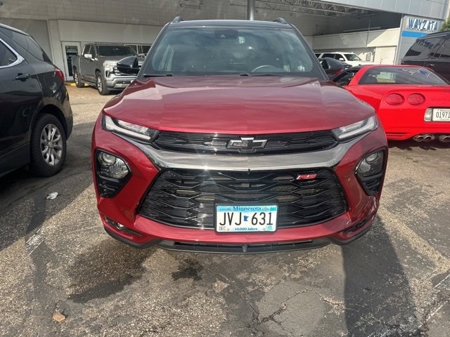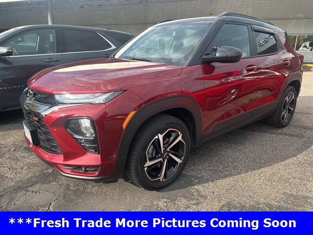 Recent Arrival! CARFAX One-Owner. Priced below KBB Fair Purchase Price! Crimson Metallic 2023 Chevrolet TrailBlazer 4D Sport Utility RS 1.3L Ecotec Turbo DOHC SIDI w/VVT AWD Odometer is 16486 miles below market average! Clean CARFAX.This TrailBlazer is well equipped with Confidence II Package (Rear Park Assist), Convenience Package (1 Type-A & 1 Type-C USB Charging-Only Ports, 120-Volt Power Outlet, 8 Diagonal Color Touchscreen Display, Cabin Humidity Sensor, Driver & Front Passenger Illuminated Vanity Mirrors, Inside Rear-View Auto-Dimming Mirror, and Single-Zone Auto Climate Control Air Conditioning), Preferred Equipment Group 1RS (Heated Steering Wheel), 2-Way Adjustable Front Head Restraints, 2-Way Power Driver Lumbar Seat Adjuster, 3.17 Axle Ratio, 4-Way Manual Front Passenger Seat Adjuster, 4-Wheel Disc Brakes, 6 Speakers, 6-Speaker Audio System Feature w/Amplifier, 7 Diagonal Color Touchscreen, 8-Way Power Driver Seat Adjuster, ABS brakes, Air Conditioning, Alloy wheels, AM/FM radio: SiriusXM, Auto High-beam Headlights, Brake assist, Bumpers: body-color, Cloth w/Leatherette Seat Trim, Compass, Delay-off headlights, Driver door bin, Driver vanity mirror, Dual front impact airbags, Dual front side impact airbags, Electronic Stability Control, Emergency communication system: OnStar and Chevrolet connected services capable, Exterior Parking Camera Rear, Flat-Folding Front Passenger Seatback, Front anti-roll bar, Front Bucket Seats, Front Center Armrest, Front fog lights, Front License Plate Bracket, Front reading lights, Front wheel independent suspension, Fully automatic headlights, Heated door mirrors, Heated Driver & Front Passenger Seats, Heated front seats, Heated steering wheel, Illuminated entry, Knee airbag, Leather Shift Knob, Leather steering wheel, Low tire pressure warning, Mosaic Black Metallic Two-Tone Roof, Not Equipped w/Heated Steering Wheel, Not Equipped w/Rear Park Assist, Occupant sensing airbag, Overhead airbag, Overhead console, Panic alarm, Passenger door bin, Passenger vanity mirror, Power door mirrors, Power driver seat, Power steering, Power windows, Radio data system, Radio: Chevrolet Infotainment 3 System, Rear seat center armrest, Rear side impact airbag, Rear window defroster, Rear window wiper, Remote keyless entry, Ride & Handling Suspension, Security system, SiriusXM Radio, Speed control, Split folding rear seat, Spoiler, Steering wheel mounted audio controls, Tachometer, Telescoping steering wheel, Tilt steering wheel, Traction control, Trip computer, Variably intermittent wipers, Wheels: 18 High Gloss Black Machined Aluminum, and Wireless Apple CarPlay/Android Auto.