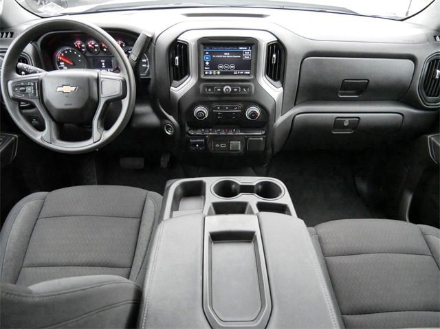 This Silverado 1500 is well equipped with Custom Convenience Package (Electric Rear-Window Defogger, EZ Lift Power Lock & Release Tailgate, LED Cargo Area Lighting, Remote Vehicle Starter System, and Theft Deterrent System (Unauthorized Entry)), Custom Value Package, High Capacity Suspension Package, Preferred Equipment Group 1CX (10-Way Power Driver Seat w/Lumbar, 120-Volt Bed Mounted Power Outlet, Deep-Tinted Glass, Dual Rear USB Ports (Charge Only), HD Rear Vision Camera, SiriusXM Radio, 120-Volt Interior Power Outlet, 3.5 Monochromatic Display Driver Info Center, Bluetooth® For Phone, Chevrolet Connected Access Capable, Color-Keyed Carpeting Floor Covering, Electrical Steering Column Lock, Electronic Cruise Control, Front Frame-Mounted Black Recovery Hooks, Front Rubberized Vinyl Floor Mats, Manual Tilt Wheel Steering Column, OnStar & Chevrolet Connected Services Capable, Power Front Windows w/Driver Express Up/Down, Power Front Windows w/Passenger Express Down, Power Rear Windows w/Express Down, Rear 60/40 Folding Bench Seat (Folds Up), Rear Rubberized-Vinyl Floor Mats, Remote Keyless Entry, and Wi-Fi Hot Spot Capable), Trailering Package (Hitch Guidance), Auto-Locking Rear Differential, 3.42 Rear Axle Ratio, 4-Wheel Disc Brakes, 40/20/40 Front Split-Bench Seat, 6 Speakers, 6-Speaker Audio System, ABS brakes, Air Conditioning, Alloy wheels, AM/FM radio: SiriusXM, Auto High-beam Headlights, Automatic Emergency Braking, Brake assist, Bumpers: body-color, Cloth Seat Trim, Compass, Delay-off headlights, Driver door bin, Driver vanity mirror, Dual front impact airbags, Dual front side impact airbags, Electronic Stability Control, Following Distance Indicator, Forward Collision Alert, Front anti-roll bar, Front Center Armrest w/Storage, Front License Plate Kit, Front Pedestrian Braking, Front reading lights, Front wheel independent suspension, Fully automatic headlights, Heated door mirrors, Illuminated entry, Integrated Trailer Brake Controller, IntelliBeam Automatic High Beam On/Off, Lane Keep Assist w/Lane Departure Warning, Low tire pressure warning, Occupant sensing airbag, Outside temperature display, Overhead airbag, Overhead console, Panic alarm, Passenger door bin, Passenger vanity mirror, Power door mirrors, Power driver seat, Power steering, Power windows, Premium audio system: Chevrolet Infotainment 3, Radio data system, Radio: Chevrolet Infotainment 3 System, Rear reading lights, Rear step bumper, Rear Wheelhouse Liners, Rear window defroster, Remote keyless entry, Security system, Single Outlet Exhaust, Speed control, Speed-sensing steering, Split folding rear seat, Tachometer, Tilt steering wheel, Traction control, Trip computer, Variably intermittent wipers, Voltmeter, and Wheels: 20 x 9 Bright Silver Painted Aluminum.