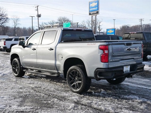 CARFAX One-Owner. Priced below KBB Fair Purchase Price! Sterling Gray Metallic 2024 Chevrolet Silverado 1500 4D Crew Cab LT Trail Boss 2.7L I4 Turbocharged DOHC 16V LEV3-SULEV30 310hp 4WD Odometer is 8860 miles below market average! Clean CARFAX.10-Way Power Driver Seat w/Lumbar, 12.3 Multicolor Reconfigurable Digital Display, 120-Volt Bed Mounted Power Outlet, 120-Volt Interior Power Outlet, 3.42 Rear Axle Ratio, 6 Rectangular Black Tubular Assist Steps (LPO), Auto-Locking Rear Differential, Bluetooth® For Phone, Chevytec Spray-On Black Bedliner, Convenience Package, Dual-Zone Automatic Climate Control, Heated Driver & Front Outboard Passenger Seats, Heated Steering Wheel, Hitch Guidance, Keyless Open & Start, LED Cargo Area Lighting, Multi-Flex Tailgate, Preferred Equipment Group 2LT, Protection Package, Rear Wheelhouse Liners, Remote Vehicle Starter System, Suspension Package, Trailering Package, Wheels: 20 x 9 High Gloss Black Painted Alum.This Silverado 1500 is well equipped with Convenience Package (10-Way Power Driver Seat w/Lumbar, 120-Volt Bed Mounted Power Outlet, 120-Volt Interior Power Outlet, Dual-Zone Automatic Climate Control, Heated Driver & Front Outboard Passenger Seats, Heated Steering Wheel, Keyless Open & Start, Remote Vehicle Starter System, Dual Rear USB Ports (Charge Only), Electric Rear-Window Defogger, Theft Deterrent System (Unauthorized Entry), and Wrapped Steering Wheel), Preferred Equipment Group 2LT (12.3 Multicolor Reconfigurable Digital Display, Auto-Locking Rear Differential, Bluetooth® For Phone, LED Cargo Area Lighting, 6-Speaker Audio System, All-Weather Floor Liner (LPO) (AAK), Chevrolet Connected Access Capable, Color-Keyed Carpeting Floor Covering, Deep-Tinted Glass, Electrical Steering Column Lock, Electronic Cruise Control, EZ Lift Power Lock & Release Tailgate, Front LED Fog Lamps, HD Rear Vision Camera, Heated Power-Adjustable Outside Mirrors, High Gloss Black Mirror Caps, Inside Rear-View Mirror w/Tilt, OnStar & Chevrolet Connected Services Capable, Performance Red Recovery Hooks, Power Front Windows w/Driver Express Up/Down, Power Front Windows w/Passenger Express Down, Power Rear Windows w/Express Down, Rear 60/40 Folding Bench Seat (Folds Up), SiriusXM w/360L, Steering Wheel Audio Controls, and Wi-Fi Hot Spot Capable), Protection Package (Chevytec Spray-On Black Bedliner and Rear Wheelhouse Liners), Suspension Package (Heavy-Duty Air Filter and Hill Descent Control), Trailering Package (Hitch Guidance), 3.42 Rear Axle Ratio, 6 Rectangular Black Tubular Assist Steps (LPO), Multi-Flex Tailgate, Wheels: 20 x 9 High Gloss Black Painted Alum, 220 Amp Alternator, 4-Wheel Disc Brakes, 40/20/40 Front Split-Bench Seat, 6 Speakers, ABS brakes, Air Conditioning, Alloy wheels, AM/FM radio: SiriusXM with 360L, Auto High-beam Headlights, Automatic Emergency Braking, Automatic temperature control, Brake assist, Cloth Seat Trim, Compass, Delay-off headlights, Driver door bin, Driver vanity mirror, Dual front impact airbags, Dual front side impact airbags, Electronic Stability Control, Following Distance Indicator, Forward Collision Alert, Front anti-roll bar, Front Center Armrest w/Storage, Front dual zone A/C, Front fog lights, Front Pedestrian Braking, Front reading lights, Front wheel independent suspension, Fully automatic headlights, Heated door mirrors, Heated front seats, Heated steering wheel, Illuminated entry, IntelliBeam Automatic High Beam On/Off, Lane Keep Assist w/Lane Departure Warning, Low tire pressure warning, Occupant sensing airbag, Outside temperature display, Overhead airbag, Overhead console, Panic alarm, Passenger door bin, Passenger vanity mirror, Power door mirrors, Power driver seat, Power steering, Power windows, Premium audio system: Chevrolet Infotainment 3 Premium, Radio data system, Radio: Chevrolet Infotainment 3 Premium System, Rear reading lights, Rear step bumper, Rear window defroster, Remote keyless entry, Security system, Singl