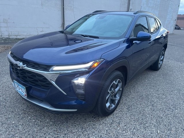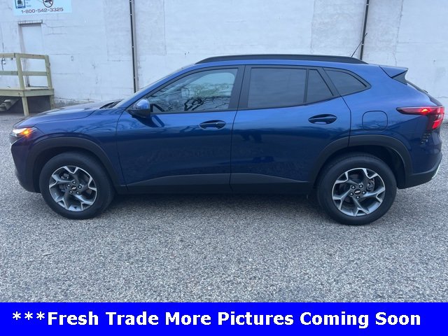 Recent Arrival! CARFAX One-Owner. Blue Glow Metallic 2024 Chevrolet Trax 4D Sport Utility LT 1.2L Ecotec Turbo DOHC DI w/VVT FWD Odometer is 18749 miles below market average! Clean CARFAX.Adaptive Cruise Control, Blackout Package (LPO), Driver Confidence Package, LT Convenience Package, Preferred Equipment Group 1LT.This Trax is well equipped with Blackout Package (LPO) (Black Nameplate (LPO) and Front & Rear Black Bowtie Emblems (LPO)), Driver Confidence Package (Adaptive Cruise Control, Lane Change Alert w/Side Blind Zone Alert, Rear Cross-Traffic Alert, and Rear Park Assist), LT Convenience Package (Heated Driver & Front Passenger Seats, Heated Power-Adjustable Outside Mirrors, Heated Steering Wheel, Keyless Open, and Wrapped Steering Wheel), Preferred Equipment Group 1LT, License Plate Front Mounting Package, 2-Way Adjustable Front Head Restraints, 3.50 Final Drive Axle Ratio, 4-Way Manual Front Passenger Seat Adjuster, 4-Wheel Disc Brakes, 6 Speakers, 6-Speaker Audio System Feature, 6-Way Manual Driver Seat Adjuster, ABS brakes, Air Conditioning, Alloy wheels, AM/FM radio: SiriusXM, Auto High-beam Headlights, Automatic temperature control, Brake assist, Bumpers: body-color, Cloth/Evotex Seat Trim, Compass, Delay-off headlights, Driver door bin, Driver vanity mirror, Dual front impact airbags, Dual front side impact airbags, Electronic Stability Control, Emergency communication system: OnStar and Chevrolet connected services capable, Exterior Parking Camera Rear, Front anti-roll bar, Front Bucket Seats, Front Center Armrest, Front reading lights, Front wheel independent suspension, Fully automatic headlights, Illuminated entry, Low tire pressure warning, Occupant sensing airbag, Outside temperature display, Overhead airbag, Overhead console, Panic alarm, Passenger door bin, Passenger vanity mirror, Power door mirrors, Power steering, Power windows, Premium audio system: Chevrolet Infotainment 3, Radio data system, Radio: Audio System w/AM/FM, Rear Park Assist (DISC), Rear window defroster, Rear window wiper, Remote keyless entry, Security system, SiriusXM, Speed control, Split folding rear seat, Spoiler, Steering wheel mounted audio controls, Tachometer, Telescoping steering wheel, Tilt steering wheel, Traction control, Trip computer, Variably intermittent wipers, and Wheels: 17 Gray-Painted Machined Aluminum.