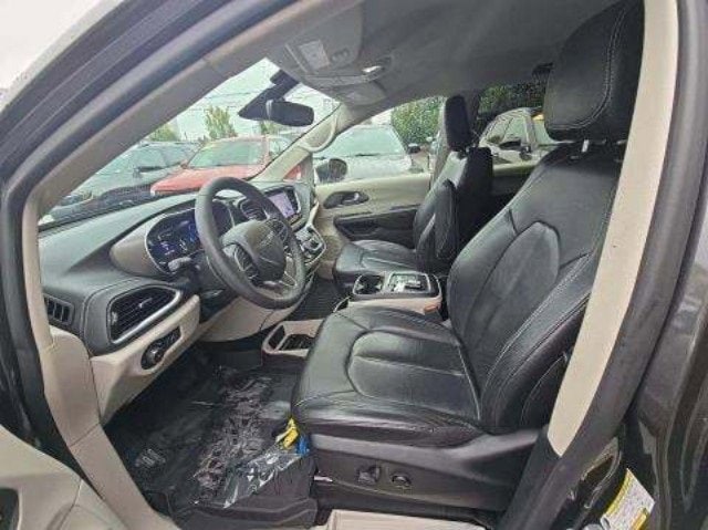 This Pacifica Hybrid is well equipped with Quick Order Package 2EL, 10.1 Touchscreen Display, 3.59 Axle Ratio, 3rd row seats: split-bench, 4-Wheel Disc Brakes, 6 Speakers, ABS brakes, Air Conditioning, Alloy wheels, AM/FM radio: SiriusXM, Apple CarPlay, Apple CarPlay/Android Auto, Auto-dimming Rear-View mirror, Automatic temperature control, Black Seats, Brake assist, Bumpers: body-color, Compass, Delay-off headlights, Disassociated Touchscreen Display, Driver door bin, Driver vanity mirror, Driver's Seat Mounted Armrest, Dual front impact airbags, Dual front side impact airbags, Electronic Stability Control, Emergency communication system: Uconnect Access, Exterior Parking Camera Rear, For More Info, Call 800-643-2112, Four wheel independent suspension, Front anti-roll bar, Front Bucket Seats, Front dual zone A/C, Front Fascia Air Deflectors, Front fog lights, Front reading lights, Fully automatic headlights, Garage door transmitter, Google Android Auto, GPS Antenna Input, Heated door mirrors, Heated front seats, Heated steering wheel, Heavy Duty Suspension, Illuminated entry, Integrated Active Noise Cancellation, Integrated Center Stack Radio, Knee airbag, Low tire pressure warning, Memory seat, Occupant sensing airbag, Outside temperature display, Overhead airbag, Overhead console, Panic alarm, ParkSense Rear Park Assist Unavailable, Passenger door bin, Passenger seat mounted armrest, Passenger vanity mirror, Perforated Leather Trim Bucket Seats, Power door mirrors, Power driver seat, Power Liftgate, Power steering, Power windows, Radio data system, Radio: Uconnect 5 w/10.1 Display, Rain sensing wipers, Rear air conditioning, Rear reading lights, Rear window defroster, Rear window wiper, Reclining 3rd row seat, Remote keyless entry, Security system, SiriusXM Radio Service, SiriusXM Satellite Radio, Speed control, Split folding rear seat, Spoiler, Steering wheel mounted audio controls, Tachometer, Telescoping steering wheel, Tilt steering wheel, Traction control, Trip computer, Turn signal indicator mirrors, USB Host Flip, Variably intermittent wipers, Voltmeter, and Wheels: 17 x 7.0 Diamond Cut w/Painted Pockets.