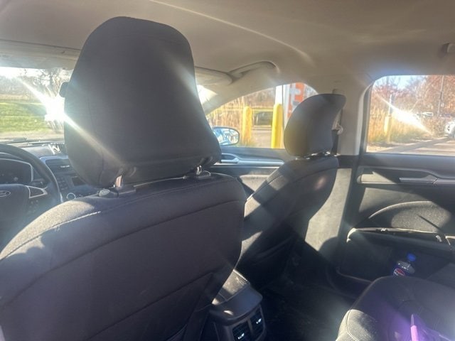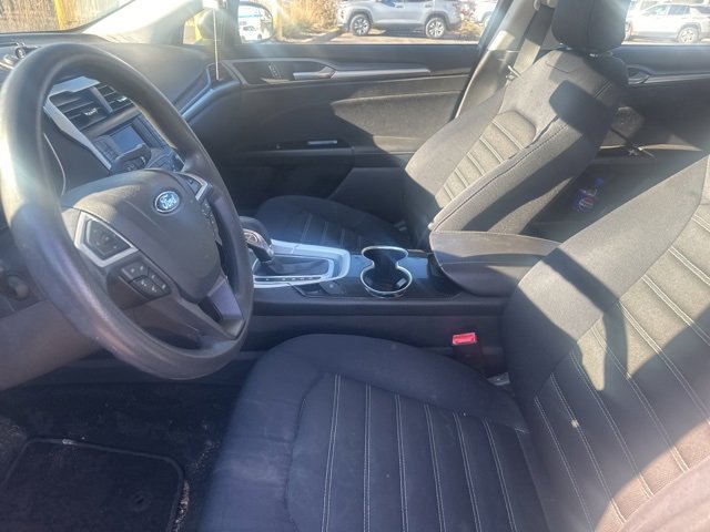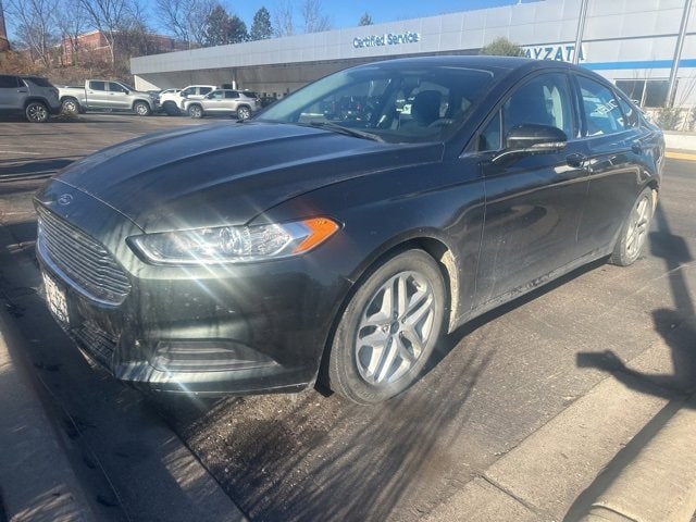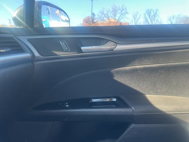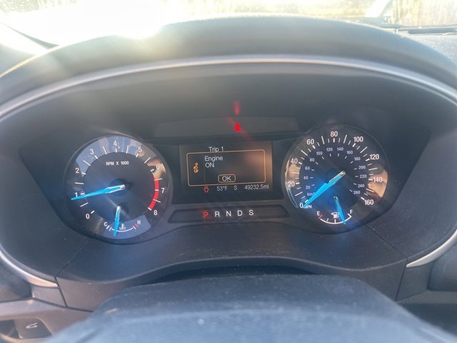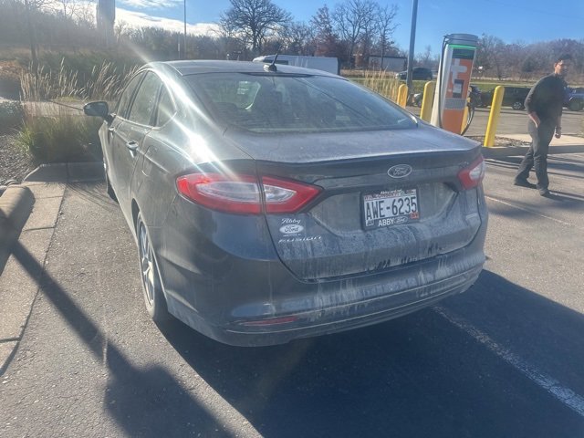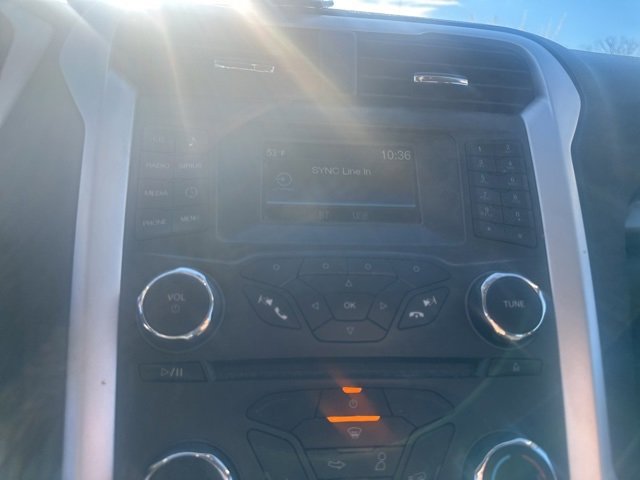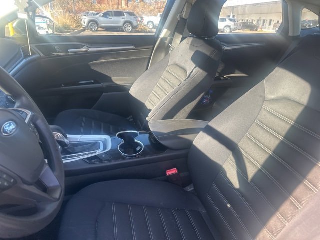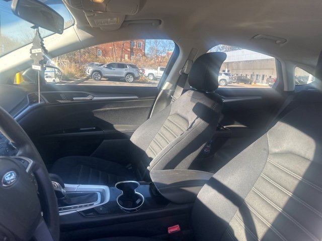 This Fusion is well equipped with 17 Painted Aluminum Wheels, 4-Wheel Disc Brakes, 6 Speakers, ABS brakes, Air Conditioning, Alloy wheels, AM/FM radio: SiriusXM, Brake assist, Bumpers: body-color, CD player, Cloth Front Bucket Seats, Compass, Delay-off headlights, Driver door bin, Driver vanity mirror, Dual front impact airbags, Dual front side impact airbags, Electronic Stability Control, Exterior Parking Camera Rear, Four wheel independent suspension, Front anti-roll bar, Front Bucket Seats, Front Center Armrest, Front reading lights, Fully automatic headlights, Heated door mirrors, Illuminated entry, Knee airbag, Low tire pressure warning, Occupant sensing airbag, Outside temperature display, Overhead airbag, Overhead console, Panic alarm, Passenger door bin, Passenger vanity mirror, Power door mirrors, Power driver seat, Power passenger seat, Power steering, Power windows, Radio data system, Radio: AM/FM Stereo/MP3/Single-CD, Rear anti-roll bar, Rear reading lights, Rear seat center armrest, Rear window defroster, Remote keyless entry, Security system, SIRIUS Satellite Radio, Speed control, Speed-sensing steering, Speed-Sensitive Wipers, Split folding rear seat, Steering wheel mounted audio controls, SYNC Communications & Entertainment System, Tachometer, Telescoping steering wheel, Tilt steering wheel, Traction control, Trip computer, Turn signal indicator mirrors, and Variably intermittent wipers.