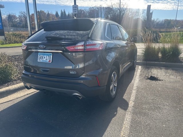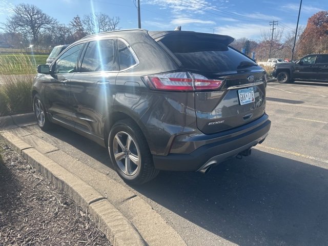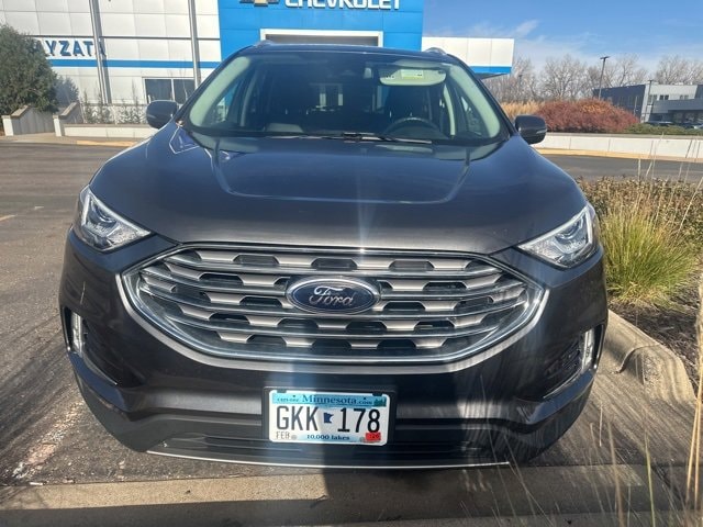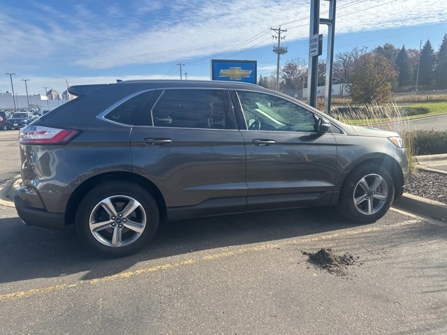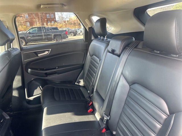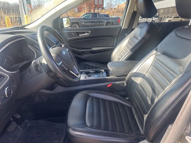 This Edge is well equipped with Class II Trailer Tow Package, Cold Weather Package (Heated Steering Wheel, Front & Rear Floor Liners, and Windshield Wiper De-Icer), Convenience Package (Foot-Activated Hands-Free Liftgate, Remote Start System, Universal Garage Door Opener (UGDO), Wireless Charging Pad, 110V/150W AC Power Outlet, and Perimeter Alarm), Equipment Group 201A, Ford Co-Pilot360 Assist+ (Adaptive Cruise Control w/Stop & Go, Voice-Activated Touchscreen Navigation System, Evasive Steering Assist, Lane Centering, and SiriusXM Traffic & Travel Link), ActiveX Seating Material Heated Bucket Seats, Wheels: 18 Bright-Machined Aluminum, 3.80 Axle Ratio, 4-Wheel Disc Brakes, 9 Speakers, ABS brakes, Air Conditioning, Alloy wheels, AM/FM radio: SiriusXM, Auto High-beam Headlights, Auto-dimming Rear-View mirror, Automatic temperature control, Brake assist, Bumpers: body-color, Compass, Delay-off headlights, Driver door bin, Driver vanity mirror, Dual front impact airbags, Dual front side impact airbags, Electronic Stability Control, Emergency communication system: SYNC 3 911 Assist, FordPass Connect, Four wheel independent suspension, Front anti-roll bar, Front Bucket Seats, Front Center Armrest w/Storage, Front dual zone A/C, Front fog lights, Front reading lights, Fully automatic headlights, Heated door mirrors, Heated front seats, Illuminated entry, Knee airbag, Low tire pressure warning, Occupant sensing airbag, Outside temperature display, Overhead airbag, Overhead console, Panic alarm, Passenger door bin, Passenger vanity mirror, Power door mirrors, Power driver seat, Power passenger seat, Power steering, Power windows, Premium 9 Speaker Audio System, Radio: AM/FM Stereo/MP3 Capable, Rain sensing wipers, Rear anti-roll bar, Rear reading lights, Rear seat center armrest, Rear window defroster, Rear window wiper, Remote keyless entry, Roof rack: rails only, SiriusXM Radio, Speed control, Speed-Sensitive Wipers, Split folding rear seat, Spoiler, Steering wheel mounted audio controls, SYNC 3 Communications & Entertainment System, Tachometer, Telescoping steering wheel, Tilt steering wheel, Traction control, Trip computer, Turn signal indicator mirrors, and Variably intermittent wipers.