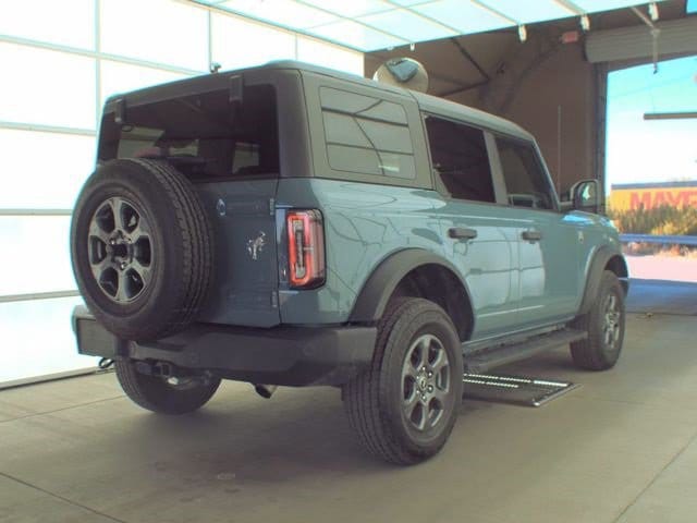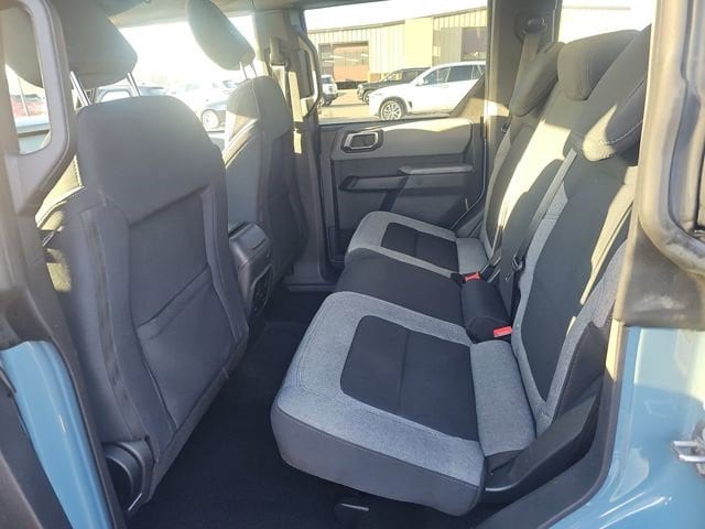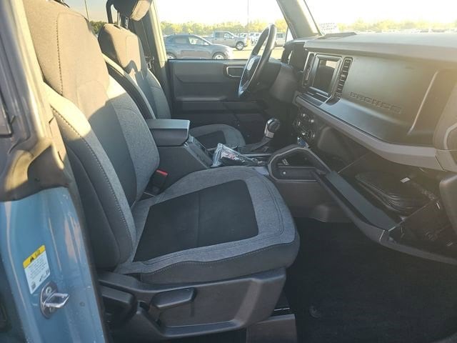 This Bronco is well equipped with ABS brakes, Compass, Electronic Stability Control, Heated door mirrors, Illuminated entry, Low tire pressure warning, Remote keyless entry, Traction control, 4-Wheel Disc Brakes, 7 Speakers, Air Conditioning, AM/FM radio: SiriusXM with 360L, AM/FM Stereo, Auto High-beam Headlights, Brake assist, Delay-off headlights, Driver door bin, Driver vanity mirror, Dual front impact airbags, Dual front side impact airbags, Emergency communication system: 911 Assist, Exterior Parking Camera Rear, Front anti-roll bar, Front Bucket Seats, Front Center Armrest, Front reading lights, Front wheel independent suspension, Fully automatic headlights, Integrated roll-over protection, Occupant sensing airbag, Outside temperature display, Overhead airbag, Overhead console, Panic alarm, Passenger door bin, Passenger vanity mirror, Power door mirrors, Power steering, Power windows, Radio data system, Security system, SiriusXM Radio w/360L, Speed control, Split folding rear seat, Steering wheel mounted audio controls, SYNC 4, Tachometer, Telescoping steering wheel, Tilt steering wheel, Trip computer, and Variably intermittent wipers.