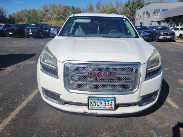 This Acadia is well equipped with Acoustical Insulation Package, 7-Passenger Seating (2-2-3 Seating Configuration), 8-Way Power Driver Seat, Exterior Parking Camera Rear, Power Liftgate, Rear Parking Sensors, Remote Vehicle Start, 18 x 7.5 Aluminum (4) Wheels, 2-Way Power Front Passenger Seat, 3.16 Axle Ratio, 3rd row seats: split-bench, 4-Wheel Disc Brakes, 6 Speakers, 6-Speaker Audio System, ABS brakes, Air Conditioning, Alloy wheels, AM/FM radio: SiriusXM, Auto-dimming Rear-View mirror, Black Power-Adjustable Outside Mirrors, Body-Color Bodyside Moldings, Bodyside moldings, Brake assist, Bumpers: body-color, Carpeted Removable Front 2nd & 3rd Row Floor Mats, CD player, Compass, Constant Effort Power Steering, Delay-off headlights, Driver door bin, Driver vanity mirror, Dual front impact airbags, Dual front side impact airbags, Electronic Stability Control, Emergency communication system: OnStar Guidance, Four wheel independent suspension, Front anti-roll bar, Front Bucket Seats, Front Center Armrest w/Storage, Front reading lights, Fully automatic headlights, Illuminated entry, Inside Rear-View Auto-Dimming Mirror, Leather-Wrapped Steering Wheel, Low tire pressure warning, Occupant sensing airbag, Outside temperature display, Overhead airbag, Overhead console, Panic alarm, Passenger door bin, Passenger vanity mirror, Power door mirrors, Power driver seat, Power passenger seat, Power Rear Liftgate Body, Power steering, Power windows, Power Windows w/Driver Express-Down, Premium Cloth Seat Trim, Radio data system, Radio: Color Touch AM/FM/CD w/IntelliLink, Rear air conditioning, Rear anti-roll bar, Rear reading lights, Rear window defroster, Rear window wiper, Remote keyless entry, Roof rack: rails only, Single Outlet Exhaust, Single-Zone Manual Front Climate Control, SiriusXM Satellite Radio, Speed control, Spoiler, Steering Wheel Mounted Audio Controls, Steering wheel mounted audio controls, Tachometer, Telescoping steering wheel, Tilt & Telescopic Steering Column, Tilt steering wheel, Traction control, Trip computer, Variably intermittent wipers, and Voltmeter.