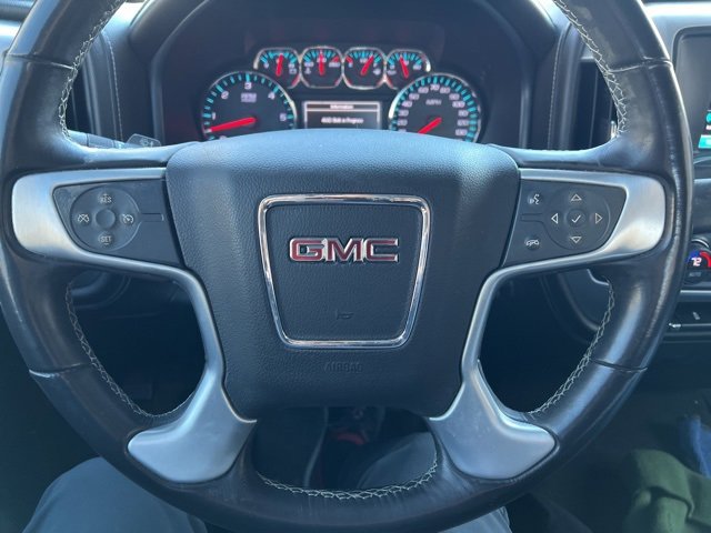 This Sierra 1500 is well equipped with Off-Road Suspension Package (Hill Descent Control and Wheels: 18 x 8.5 Bright Machined Aluminum), Preferred Equipment Group 3SA (2-Speed Active Electronic AutoTrac Transfer Case, EZ Lift & Lower Tailgate, Heavy-Duty Rear Locking Differential, Leather Wrapped Steering Wheel w/Cruise Controls, LED Cargo Box Lighting, Rear Vision Camera, Rear Wheelhouse Liners, 150 Amp Alternator, 4.2 Diagonal Color Display Driver Info Center, Body Color Bodyside Moldings, Body Color Door Handles, Body Color Power Adjustable Heated Outside Mirrors, Body-Color Mirror Caps, Color-Keyed Carpeting, Deep-Tinted Glass, Driver & Front Passenger Illuminated Vanity Mirrors, Front Frame-Mounted Black Recovery Hooks, OnStar 3 Month Guidance Plan, OnStar w/4G LTE, Power Windows w/Driver Express Up & Down, Rear 60/40 Folding Bench Seat (Folds Up), Remote Keyless Entry, Remote Locking Tailgate, Rubberized-Vinyl Front Floor Mats, Rubberized-Vinyl Rear Floor Mats, Single Slot CD/MP3 Player, and Steering Wheel Audio Controls), SLE Value Package (10-Way Power Driver's Seat Adjuster, 110-Volt AC Power Outlet, Dual-Zone Automatic Climate Control, Electric Rear-Window Defogger, Remote Vehicle Starter System, Universal Home Remote, Theft Deterrent System (Unauthorized Entry), and Thin Profile LED Fog Lamps), Trailering Equipment, Heated Driver & Front Passenger Seats, Integrated Trailer Brake Controller, 3.42 Rear Axle Ratio, 4-Wheel Disc Brakes, 40/20/40 Front Split Bench Seat, 6 Speakers, 6-Speaker Audio System, ABS brakes, Air Conditioning, Alloy wheels, AM/FM radio, Auxiliary External Transmission Oil Cooler, Bodyside moldings, Brake assist, Bumpers: chrome, CD player, Cloth Seat Trim, Compass, Delay-off headlights, Driver door bin, Driver vanity mirror, Dual front impact airbags, Dual front side impact airbags, E85 FlexFuel Capable, Electronic Stability Control, Emergency communication system: OnStar Guidance, Exterior Parking Camera Rear, Front anti-roll bar, Front Center Armrest w/Storage, Front reading lights, Front wheel independent suspension, Fully automatic headlights, HD Radio, Heated door mirrors, Heavy Duty Suspension, High-Intensity Discharge Headlights, Illuminated entry, Low tire pressure warning, Manual Tilt/Telescoping Steering Column, Occupant sensing airbag, Outside temperature display, Overhead airbag, Overhead console, Panic alarm, Passenger door bin, Passenger vanity mirror, Power door mirrors, Power steering, Power windows, Radio data system, Radio: AM/FM Stereo w/8 Diagonal Color Touch Screen, Rear reading lights, Rear step bumper, Remote keyless entry, SiriusXM Satellite Radio, Speed control, Speed-sensing steering, Split folding rear seat, Steering wheel mounted audio controls, Tachometer, Tilt steering wheel, Traction control, Trip computer, Variably intermittent wipers, Voltmeter, and Wheels: 17 x 8 Bright Machined Aluminum.