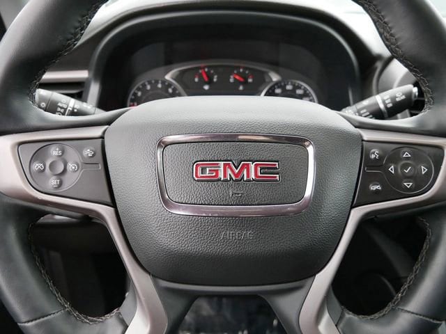 This Acadia is well equipped with Preferred Equipment Group 4SB, Apple CarPlay/Android Auto, Bose Premium 8-Speaker Audio System Feature, Heated Driver & Front Passenger Seats, Navigation System, Power Liftgate, 3.49 Final Drive Axle Ratio, 3rd row seats: split-bench, 4-Way Manual Passenger Seat Adjuster, 4-Wheel Disc Brakes, 6-Passenger (2-2-2 Seating Configuration), 8 Speakers, 8-Way Power Driver Seat Adjuster, 8-Way Power Passenger Seat Adjuster, ABS brakes, Air Conditioning, Alloy wheels, AM/FM radio: SiriusXM with 360L, Auto High-beam Headlights, Auto-dimming Rear-View mirror, Automatic temperature control, Brake assist, Bumpers: body-color, Compass, Delay-off headlights, Driver door bin, Driver vanity mirror, Dual front impact airbags, Dual front side impact airbags, Electronic Stability Control, Emergency communication system: OnStar and GMC connected services capable, Four wheel independent suspension, Front anti-roll bar, Front Bucket Seats, Front Center Armrest, Front dual zone A/C, Front fog lights, Front License Plate Bracket, Front reading lights, Fully automatic headlights, Garage door transmitter, Heated door mirrors, Heated front seats, Illuminated entry, Knee airbag, Low tire pressure warning, Occupant sensing airbag, Outside temperature display, Overhead airbag, Overhead console, Panic alarm, Passenger door bin, Passenger vanity mirror, Power door mirrors, Power Driver Lumbar Control Seat Adjuster, Power driver seat, Power steering, Power windows, Premium Cloth Seat Trim, Radio data system, Radio: AM/FM 8 Diagonal Multi-Touch Navigation, Rear air conditioning, Rear anti-roll bar, Rear reading lights, Rear window defroster, Rear window wiper, Remote keyless entry, Roof rack: rails only, Security system, SiriusXM w/360L, Speed control, Speed-sensing steering, Spoiler, Steering wheel mounted audio controls, Tachometer, Telescoping steering wheel, Tilt steering wheel, Traction control, Trip computer, Turn signal indicator mirrors, Variably intermittent wipers, Voltmeter, Wheels: 17 Gloss Black Aluminum, and Wireless Apple CarPlay/Wireless Android Auto.