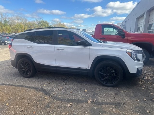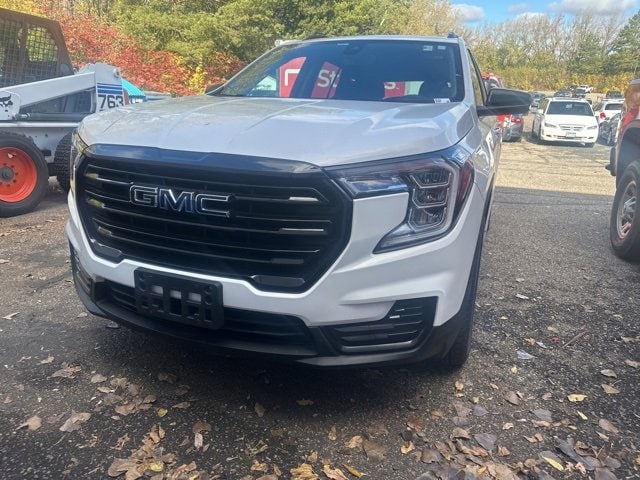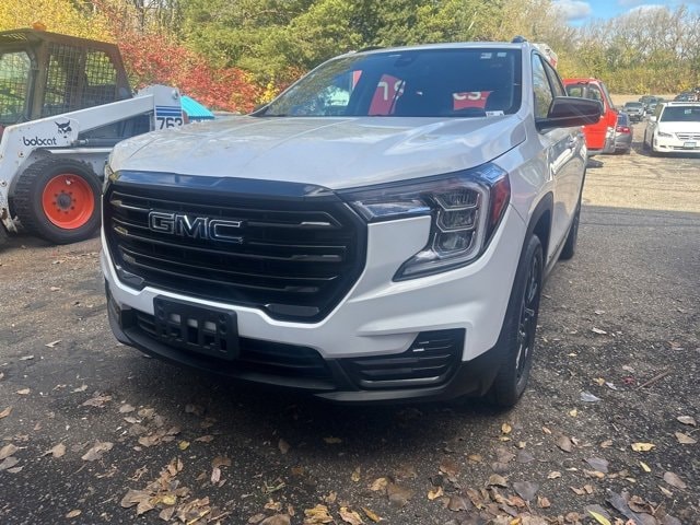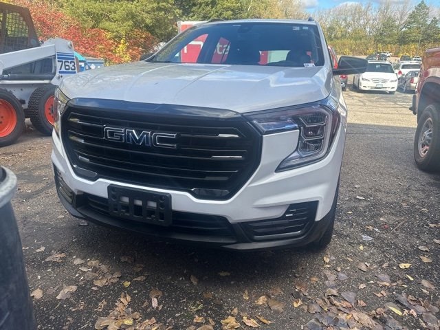 This Terrain is well equipped with Driver Convenience Package (8-Way Power Driver Seat Adjuster, Driver & Front Passenger Heated Seats, Dual-Zone Automatic Climate Control, Remote Start, Roof-Mounted Luggage Rack Side Rails, and Power Driver Lumbar Control), Elevation Edition (Black GMC Center Caps w/Red GMC Lettering, Darkened Front Grille, Wheels: 19 Gloss Black Aluminum, and Black Mirror Caps), Preferred Equipment Group 3SA, License Plate Front Mounting Package, Power Programmable Rear Liftgate, Wireless Apple CarPlay/Wireless Android Auto, 2 USB Data Ports w/Auxiliary Input Jack, 3.47 Axle Ratio, 4-Way Manual Driver's Seat, 4-Way Manual Front Passenger Seat, 4-Wheel Disc Brakes, 4.2 Multi-Color Driver Information Screen, 6 Speakers, 6-Speaker Audio System Feature, ABS brakes, Air Conditioning, Alloy wheels, AM/FM radio: SiriusXM, Auto High-beam Headlights, Auto-dimming Rear-View mirror, Bluetooth® For Phone, Brake assist, Bumpers: body-color, Compass, Delay-off headlights, Driver door bin, Driver vanity mirror, Dual front impact airbags, Dual front side impact airbags, Electronic Stability Control, Emergency communication system: OnStar and GMC connected services capable, Four wheel independent suspension, Front & Rear Black GMC Emblems (LPO), Front anti-roll bar, Front Bucket Seats, Front Center Armrest, Front reading lights, Fully automatic headlights, Heated door mirrors, Illuminated entry, Lane Departure Warning System, Low tire pressure warning, Occupant sensing airbag, Outside temperature display, Overhead airbag, Overhead console, Panic alarm, Passenger door bin, Passenger vanity mirror, Power door mirrors, Power steering, Power windows, Premium Cloth Seat Trim, Radio data system, Radio: GMC Infotainment Audio System w/7 Display, Rear anti-roll bar, Rear seat center armrest, Rear window defroster, Rear window wiper, Remote keyless entry, Security system, SiriusXM Radio, Speed control, Speed-sensing steering, Split folding rear seat, Spoiler, Steering wheel mounted audio controls, Tachometer, Telescoping steering wheel, Tilt steering wheel, Traction control, Trip computer, Variably intermittent wipers, and Wheels: 17 x 7 Silver Painted Aluminum.