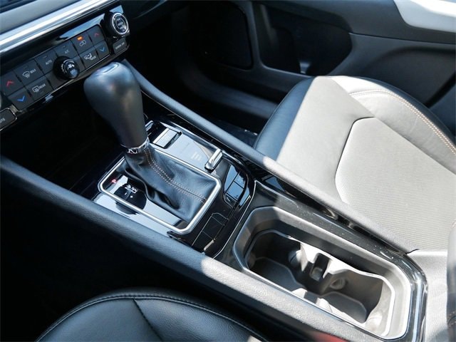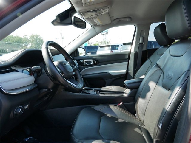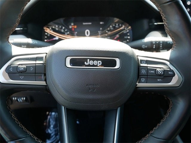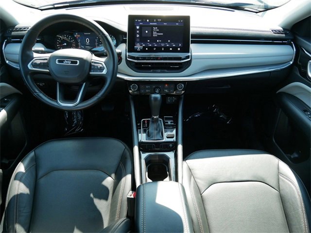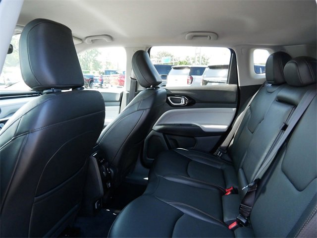 This Compass is well equipped with Quick Order Package 2GG, 10.1 Touchscreen Display, Auto-dimming Rear-View mirror, Automatic temperature control, Compass, Dual front impact airbags, Dual front side impact airbags, Electronic Stability Control, Front fog lights, Fully automatic headlights, Gloss Black Exterior Mirrors, Heated door mirrors, Heated front seats, Heated steering wheel, Knee airbag, Leather Shift Knob, Leather Trimmed Bucket Seats, Outside temperature display, Overhead airbag, ParkView Rear Back-Up Camera, Power driver seat, Security system, Wheels: 18 x 7 Painted Diamond Cut Aluminum, 3.73 Axle Ratio, 4-Wheel Disc Brakes, 6 Speakers, ABS brakes, Air Conditioning, Alloy wheels, AM/FM radio: SiriusXM, Anti-whiplash front head restraints, Auto High-beam Headlights, Brake assist, Bumpers: body-color, Delay-off headlights, Disassociated Touchscreen Display, Driver door bin, Driver vanity mirror, Emergency communication system: SiriusXM Guardian, Four wheel independent suspension, Front anti-roll bar, Front Bucket Seats, Front Center Armrest w/Storage, Front dual zone A/C, Front License Plate Bracket, Front reading lights, Global Telematics Box Module (TBM), Illuminated entry, Low tire pressure warning, Occupant sensing airbag, Overhead console, Panic alarm, Passenger door bin, Passenger vanity mirror, Power door mirrors, Power steering, Power windows, Radio: Uconnect 5 w/10.1 Display, Rain sensing wipers, Rear anti-roll bar, Rear seat center armrest, Rear window defroster, Rear window wiper, Remote keyless entry, Roof rack: rails only, Speed control, Split folding rear seat, Spoiler, Steering wheel mounted audio controls, Tachometer, Telescoping steering wheel, Tilt steering wheel, Traction control, Trip computer, Turn signal indicator mirrors, and Variably intermittent wipers.