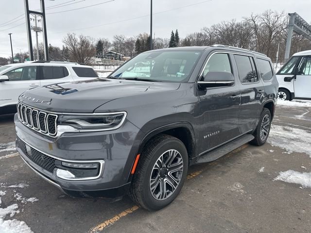 Elevate your driving experience with this exceptional 2022 Jeep Wagoneer Series III. Boasting a powerful 5.7L V8 engine and 4-wheel drive capabilities, this SUV is built to conquer any terrain with ease. Its striking gray exterior exudes a commanding presence, while the spacious 7-passenger cabin offers unparalleled comfort and convenience.