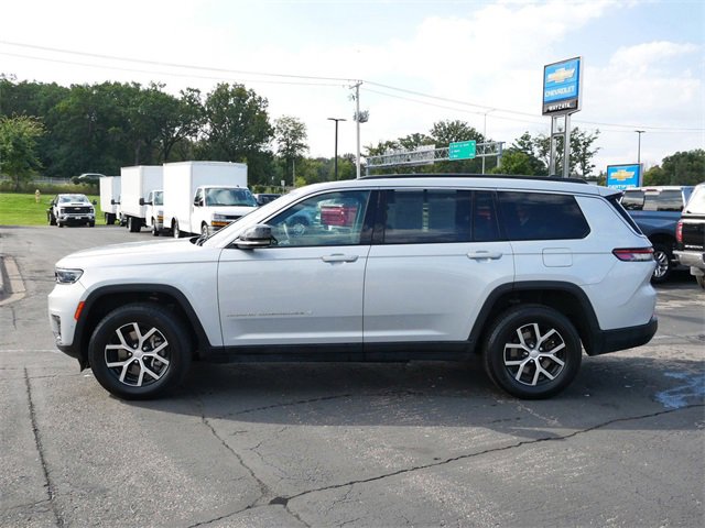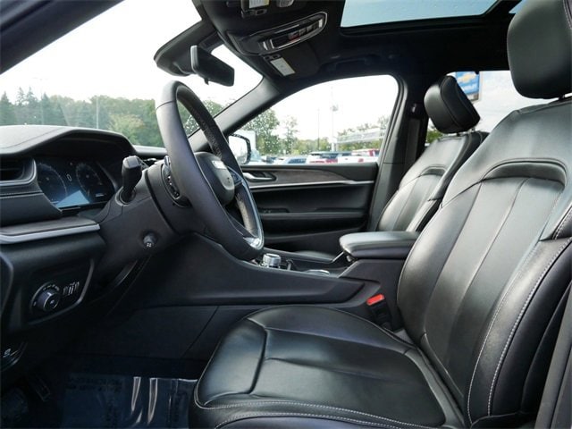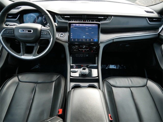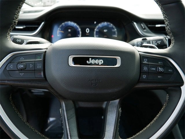 This Grand Cherokee L is well equipped with Luxury Tech Group II (Capri Leatherette w/Axis II Seats, Integrated Off-Road Camera, Intersection Collision Assist System, ParkSense Front/Rear Park Assist w/Stop, Passive Entry - Front/Rear Doors, Liftgate, Surround View Camera System, Ventilated Front Seats, Wireless Charging Pad, 2nd Row Manual Window Shades, Auto-Dimming Exterior Driver Mirror, Memory Steering Column, Power Tilt/Telescope Steering Column, Rain Sensitive Windshield Wipers, Rear Back Up Camera Washer, and Rearview Autodim Digital Display Mirror), Quick Order Package 23E, Dual-Pane Panoramic Sunroof, Heated front seats, Heated rear seats, Interior Rear Facing Camera, Navigation System, 3.45 Rear Axle Ratio, 3rd row seats: split-bench, 4-Wheel Disc Brakes, 6 Speakers, ABS brakes, Active Noise Control System, Air Conditioning, Alloy wheels, AM/FM radio: SiriusXM with 360L, Anti-whiplash front head restraints, Audio memory, Auto High-beam Headlights, Automatic temperature control, Brake assist, Bumpers: body-color, Capri Leatherette Seats, Compass, Delay-off headlights, Driver door bin, Driver vanity mirror, Dual front impact airbags, Dual front side impact airbags, Electronic Stability Control, Emergency communication system, Four wheel independent suspension, Front anti-roll bar, Front Bucket Seats, Front Center Armrest w/Storage, Front dual zone A/C, Front fog lights, Front License Plate Bracket, Front reading lights, Fully automatic headlights, Garage door transmitter, Heated door mirrors, Heated steering wheel, Illuminated entry, Knee airbag, Low tire pressure warning, Manual Fold Seatbacks, Memory seat, Normal Duty Suspension, Occupant sensing airbag, Outside temperature display, Overhead airbag, Overhead console, Panic alarm, ParkView Rear Back-Up Camera, Passenger door bin, Passenger vanity mirror, Power door mirrors, Power driver seat, Power Liftgate, Power passenger seat, Power steering, Power windows, Radio data system, Radio: Uconnect 5 Nav w/10.1 Display, Rear air conditioning, Rear anti-roll bar, Rear reading lights, Rear window defroster, Rear window wiper, Reclining 3rd row seat, Remote keyless entry, Security system, Speed control, Speed-Sensitive Wipers, Split folding rear seat, Spoiler, Steering wheel mounted audio controls, Tachometer, Telescoping steering wheel, Tilt steering wheel, Traction control, Trip computer, Turn signal indicator mirrors, Variably intermittent wipers, Voltmeter, and Wheels: 18 x 8.0 Polished/Painted Aluminum.