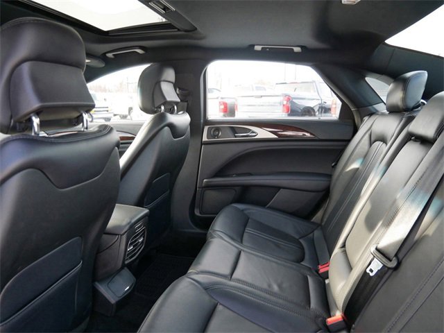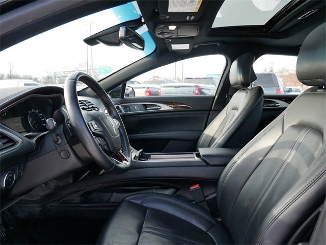 This Lincoln MKZ is well equipped with Climate Package (Heated Rear-Seats, Heated Steering Wheel, Windshield Wiper De-Icer, and Rain Sensing Wipers), Equipment Group 300A, Navigation System, Power Moonroof, 14 Speakers, 4-Wheel Disc Brakes, ABS brakes, Adaptive suspension, Air Conditioning, Alloy wheels, AM/FM radio: SiriusXM, AppLink/Apple CarPlay and Android Auto, Auto tilt-away steering wheel, Auto-dimming door mirrors, Auto-dimming Rear-View mirror, Automatic temperature control, Brake assist, Bumpers: body-color, CD player, Compass, Delay-off headlights, Driver door bin, Driver vanity mirror, Dual front impact airbags, Dual front side impact airbags, Electronic Stability Control, Emergency communication system: SYNC 3 911 Assist, Exterior Parking Camera Rear, Four wheel independent suspension, Front anti-roll bar, Front Bucket Seats, Front Center Armrest, Front dual zone A/C, Front reading lights, Fully automatic headlights, Garage door transmitter, Genuine wood dashboard insert, Genuine wood door panel insert, Heated door mirrors, Heated front seats, High-Intensity Discharge Headlights, Illuminated entry, Knee airbag, Leather steering wheel, Low tire pressure warning, Memory seat, Occupant sensing airbag, Outside temperature display, Overhead airbag, Overhead console, Panic alarm, Passenger door bin, Passenger vanity mirror, Power door mirrors, Power driver seat, Power passenger seat, Power steering, Power windows, Prem Leather-Trimmed Micro-Perf Heated/Cooled (G), Radio data system, Radio: Revel Audio System, Rear anti-roll bar, Rear Parking Sensors, Rear reading lights, Rear seat center armrest, Rear window defroster, Remote keyless entry, Security system, Speed control, Speed-sensing steering, Speed-Sensitive Wipers, Split folding rear seat, Steering wheel memory, Steering wheel mounted audio controls, SYNC 3, Tachometer, Telescoping steering wheel, Tilt steering wheel, Traction control, Trip computer, Turn signal indicator mirrors, Variably intermittent wipers, Ventilated front seats, and Wheels: 19 Magnetic Painted 20 Spoke Aluminum.