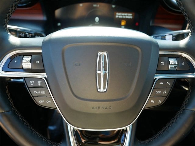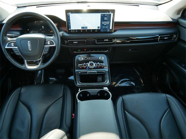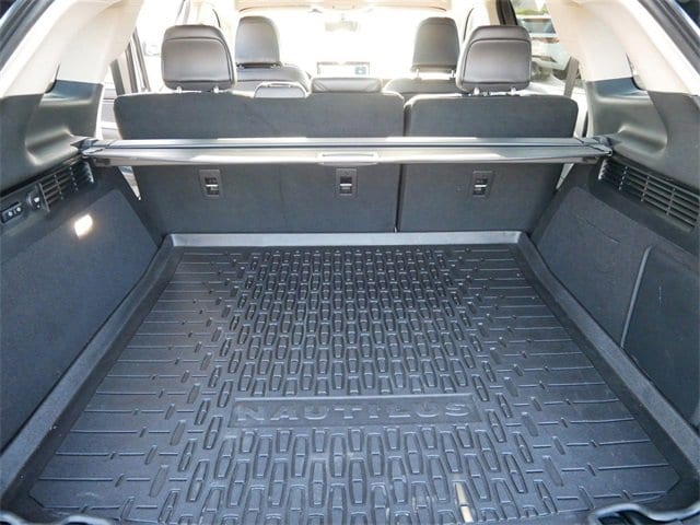 This Lincoln Nautilus is well equipped with Equipment Group 200A, Cargo Accessories & Mat Package (43D) (All-Weather Floor Liners w/o Carpet Mats, Durable Lightweight Rubber Cargo Mat, and Rear Bumper Anti-Scratch Pad/Load Protector), Garage door transmitter: HomeLink, Heated front seats, Heated rear seats, Heated steering wheel, Navigation System, Power Liftgate, Power moonroof: Panoramic Vista Roof, Power passenger seat, Premium Lthr-Trmmd Heated/Ventilated Comfort Seats, Satin Roof Rack Side Rails w/o Crossbars, Ventilated front seats, Wheels: 20 Prem Painted Bright Machined Aluminum, 10 Speakers, 3.80 Axle Ratio, 4-Wheel Disc Brakes, ABS brakes, Air Conditioning, Alexa Built-In, Alloy wheels, AM/FM radio: SiriusXM with 360L, Auto High-beam Headlights, Auto tilt-away steering wheel, Auto-dimming door mirrors, Auto-dimming Rear-View mirror, Automatic temperature control, Brake assist, Bumpers: body-color, Compass, Delay-off headlights, Driver door bin, Driver vanity mirror, Dual front impact airbags, Dual front side impact airbags, Electronic Stability Control, Emergency communication system: 911 Assist, Four wheel independent suspension, Front anti-roll bar, Front Bucket Seats, Front Center Armrest w/Storage, Front dual zone A/C, Front reading lights, Fully automatic headlights, Heated door mirrors, Illuminated entry, Knee airbag, Leather steering wheel, Lincoln Premium Audio System Subwoofer Delete (DISC), Low tire pressure warning, Memory seat, Occupant sensing airbag, Outside temperature display, Overhead airbag, Overhead console, Panic alarm, Passenger door bin, Passenger vanity mirror, Power door mirrors, Power driver seat, Power steering, Power windows, Radio data system, Radio: AM/FM/HD Audio System, Rain sensing wipers, Rear anti-roll bar, Rear reading lights, Rear seat center armrest, Rear window defroster, Rear window wiper, Remote keyless entry, Security system, Speed control, Speed-sensing steering, Speed-Sensitive Wipers, Split folding rear seat, Spoiler, Steering wheel memory, Steering wheel mounted A/C controls, Steering wheel mounted audio controls, SYNC 4 w/Enhanced Voice Recognition, Tachometer, Telescoping steering wheel, Tilt steering wheel, Traction control, Trip computer, Turn signal indicator mirrors, and Variably intermittent wipers.