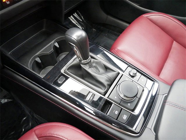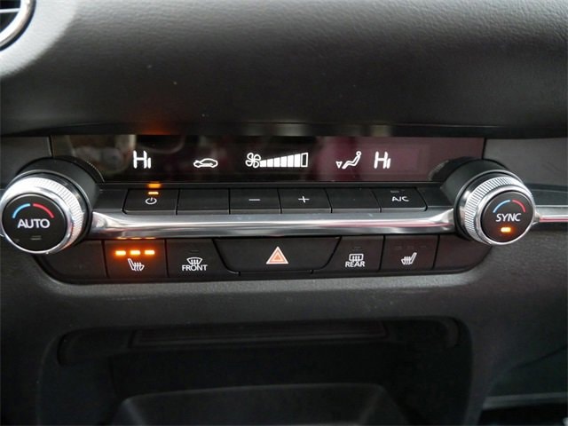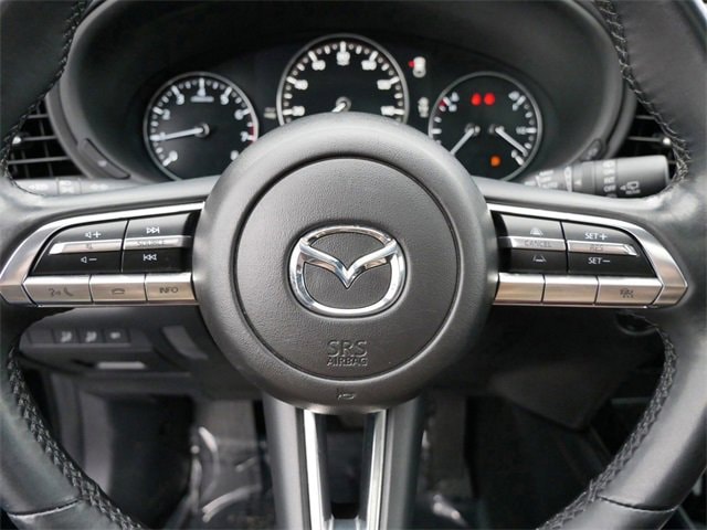This Mazda CX-30 is well equipped with AppLink/Apple CarPlay and Android Auto, Exterior Parking Camera Rear, Power moonroof, Wheels: 18 x 7J Aluminum Alloy, 4-Wheel Disc Brakes, 4.095 Axle Ratio, 8 Speakers, ABS brakes, Air Conditioning, Alloy wheels, AM/FM radio, Auto High-beam Headlights, Automatic temperature control, Brake assist, Bumpers: body-color, Compass, Delay-off headlights, Driver door bin, Driver vanity mirror, Dual front impact airbags, Dual front side impact airbags, Electronic Stability Control, Emergency communication system: Mazda Connected Services (3-year complimentary trial included), Front anti-roll bar, Front Bucket Seats, Front Center Armrest, Front dual zone A/C, Front reading lights, Front wheel independent suspension, Fully automatic headlights, Heated door mirrors, Heated Front Bucket Seats, Heated front seats, Illuminated entry, Knee airbag, Leather Seat Trim, Leather Shift Knob, Leather steering wheel, License Plate Frame, Low tire pressure warning, Low Wall All-Weather Floor Mats, MAZDA CONNECT Infotainment System, Memory seat, Occupant sensing airbag, Outside temperature display, Overhead airbag, Overhead console, Panic alarm, Passenger door bin, Passenger vanity mirror, Power door mirrors, Power driver seat, Power steering, Power windows, Radio data system, Radio: AM/FM/HD Audio System, Rain sensing wipers, Rear seat center armrest, Rear side impact airbag, Rear window defroster, Rear window wiper, Remote keyless entry, Speed control, Speed-sensing steering, Split folding rear seat, Spoiler, Steering wheel mounted audio controls, Tachometer, Telescoping steering wheel, Tilt steering wheel, Traction control, Trip computer, Turn signal indicator mirrors, Variably intermittent wipers, and Wheel Locks.
