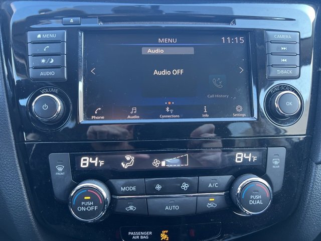 This Rogue is well equipped with Apple CarPlay/Android Auto, Heated front seats, 17 Aluminum Alloy Wheels, 4-Wheel Disc Brakes, 6 Speakers, 6.386 Axle Ratio, ABS brakes, Activation Disclaimer, Air Conditioning, Alloy wheels, AM/FM radio: SiriusXM, Anti-whiplash front head restraints, Automatic temperature control, Blind Spot Warning, Brake assist, Bumpers: body-color, CD player, Cloth Seat Trim, Delay-off headlights, Driver door bin, Driver vanity mirror, Dual front impact airbags, Dual front side impact airbags, Electronic Stability Control, First Aid Kit, Floor Mats & 2-PC Cargo Area Protector, Four wheel independent suspension, Front anti-roll bar, Front Bucket Seats, Front Center Armrest w/Storage, Front dual zone A/C, Front reading lights, Fully automatic headlights, Heated door mirrors, Illuminated entry, Leather Shift Knob, Low tire pressure warning, Occupant sensing airbag, Outside temperature display, Overhead airbag, Overhead console, Panic alarm, Passenger door bin, Passenger vanity mirror, Power door mirrors, Power driver seat, Power Liftgate, Power steering, Power windows, Quick Comfort Heated Front Bucket Seats, Radio data system, Radio: AM/FM/CD/AUX, Rear anti-roll bar, Rear seat center armrest, Rear window defroster, Rear window wiper, Remote keyless entry, Roof rack: rails only, Security system, Speed control, Speed-sensing steering, Split folding rear seat, Spoiler, Steering wheel mounted audio controls, Tachometer, Telescoping steering wheel, Tilt steering wheel, Traction control, Trip computer, Turn signal indicator mirrors, and Variably intermittent wipers.