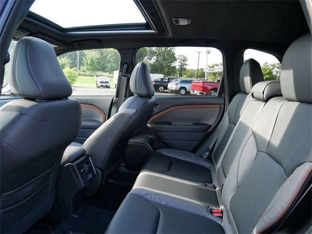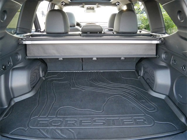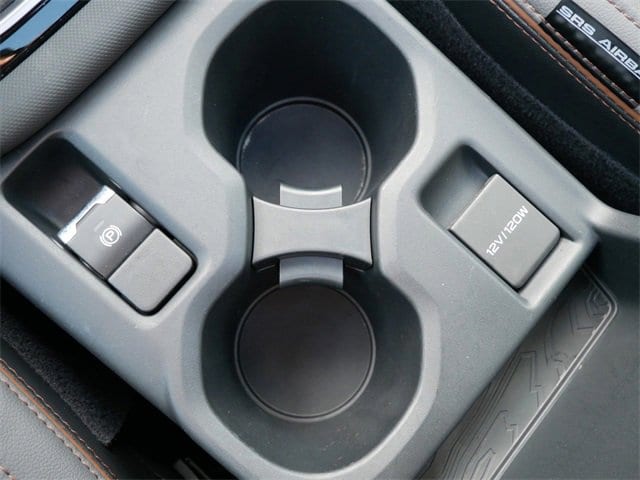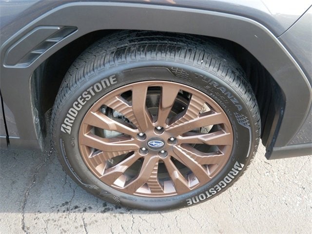 This Forester is well equipped with harman/kardon Audio & Power Rear Gate & RAB (harman/kardon Speaker System, Power Rear Gate, and Reverse Automatic Braking (RAB) System), Power moonroof: Panoramic, Wheels: 19 x 7.5 J Bronze Finish Aluminum-Alloy, 4-Wheel Disc Brakes, 6 Speakers, ABS brakes, Air Conditioning, Alloy wheels, AM/FM radio: SiriusXM with 360L, Anti-whiplash front head restraints, Auto High-beam Headlights, Automatic temperature control, Brake assist, Bumpers: body-color, Driver door bin, Driver vanity mirror, Dual front impact airbags, Dual front side impact airbags, Electronic Stability Control, Exterior Parking Camera Rear, Four wheel independent suspension, Front anti-roll bar, Front Bucket Seats, Front Center Armrest, Front dual zone A/C, Front fog lights, Front reading lights, Fully automatic headlights, Heated door mirrors, Heated Front Bucket Seats, Heated front seats, Illuminated entry, Knee airbag, Leather steering wheel, Low tire pressure warning, Occupant sensing airbag, Outside temperature display, Overhead airbag, Overhead console, Panic alarm, Passenger door bin, Passenger vanity mirror, Power door mirrors, Power driver seat, Power steering, Power windows, Radio data system, Rear anti-roll bar, Rear seat center armrest, Rear window defroster, Rear window wiper, Remote keyless entry, Security system, Speed control, Speed-sensing steering, Split folding rear seat, Spoiler, Sport StarTex Upholstery, Steering wheel mounted audio controls, Tachometer, Telescoping steering wheel, Tilt steering wheel, Traction control, Trip computer, Turn signal indicator mirrors, and Variably intermittent wipers.