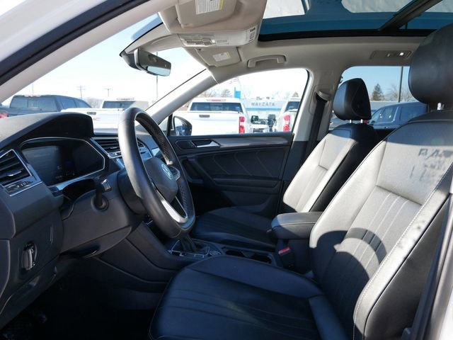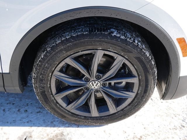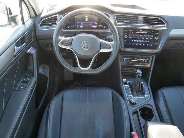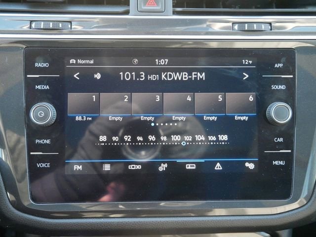 This Tiguan is well equipped with Panoramic Sunroof Package, Heated Front Comfort Seats, 2-Row Rubber Monster Mats w/Logo Kit (Set of 4), 3.33 Axle Ratio, 4-Wheel Disc Brakes, 4-Wheel Independent Suspension, 6 Speakers, ABS brakes, Air Conditioning, Alloy wheels, AM/FM radio: SiriusXM with 360L, Auto-Dimming Rear-View Mirror, Auto-dimming Rear-View mirror, Automatic temperature control, Brake assist, Bumpers: body-color, Compass, Delay-off headlights, Driver door bin, Driver vanity mirror, Dual front impact airbags, Dual front side impact airbags, Electronic Stability Control, Emergency communication system: Car-Net, Exterior Parking Camera Rear, First Aid Kit, Four wheel independent suspension, Front anti-roll bar, Front Bucket Seats, Front Center Armrest, Front dual zone A/C, Front reading lights, Fully automatic headlights, Heated door mirrors, Heated front seats, Heavy Duty Trunk Liner w/VW CarGo Blocks, Illuminated entry, Leather Shift Knob, Low tire pressure warning, Occupant sensing airbag, Outside temperature display, Overhead airbag, Overhead console, Panic alarm, Passenger door bin, Passenger vanity mirror, Perforated V-Tex Leatherette Seating Surfaces, Power door mirrors, Power driver seat, Power Liftgate, Power steering, Power windows, Radio data system, Radio: MIB3 Composition Media AM/FM/HD, Rain sensing wipers, Rear anti-roll bar, Rear reading lights, Rear seat center armrest, Rear window defroster, Rear window wiper, Remote keyless entry, Roadside Assistance Kit, Roof rack: rails only, Security system, Speed control, Speed-sensing steering, Split folding rear seat, Spoiler, Steering wheel mounted audio controls, Tachometer, Telescoping steering wheel, Tilt steering wheel, Traction control, Trip computer, Turn signal indicator mirrors, Variably intermittent wipers, VW Care, and Wheels: 18 Dark Graphite 10-Spoke Alloy.